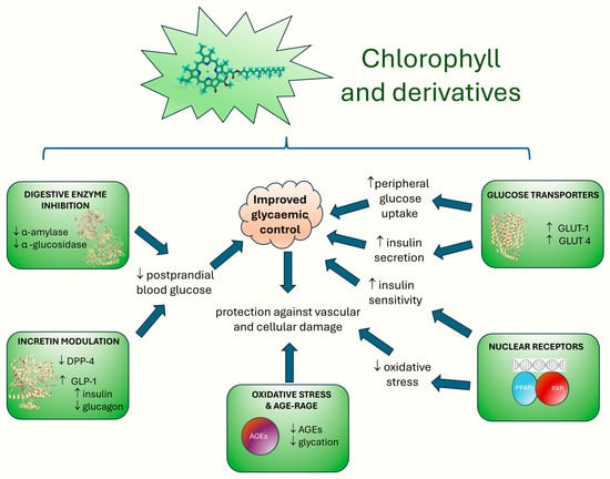 In light of the above considerations, the aim of the present review is to evaluate the current knowledge on the potential effects of chlorophyll and its derivatives in the context of diabetes, including their mechanisms of action, preclinical and clinical evidence, and directions for future research.
