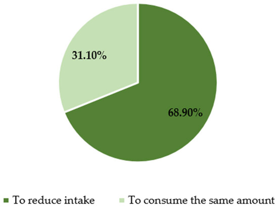 In addition, minors were asked about their attitudes toward the new regulations. Among the 525 respondents who declared that they consumed energy drinks, 360 (68.9%) reported a reduction in consumption after 1 January 2024, while the remaining 31.1% continued to consume them at the same level (Figure 3). No significant differences were observed in these declarations with respect to sex, age, or place of residence.