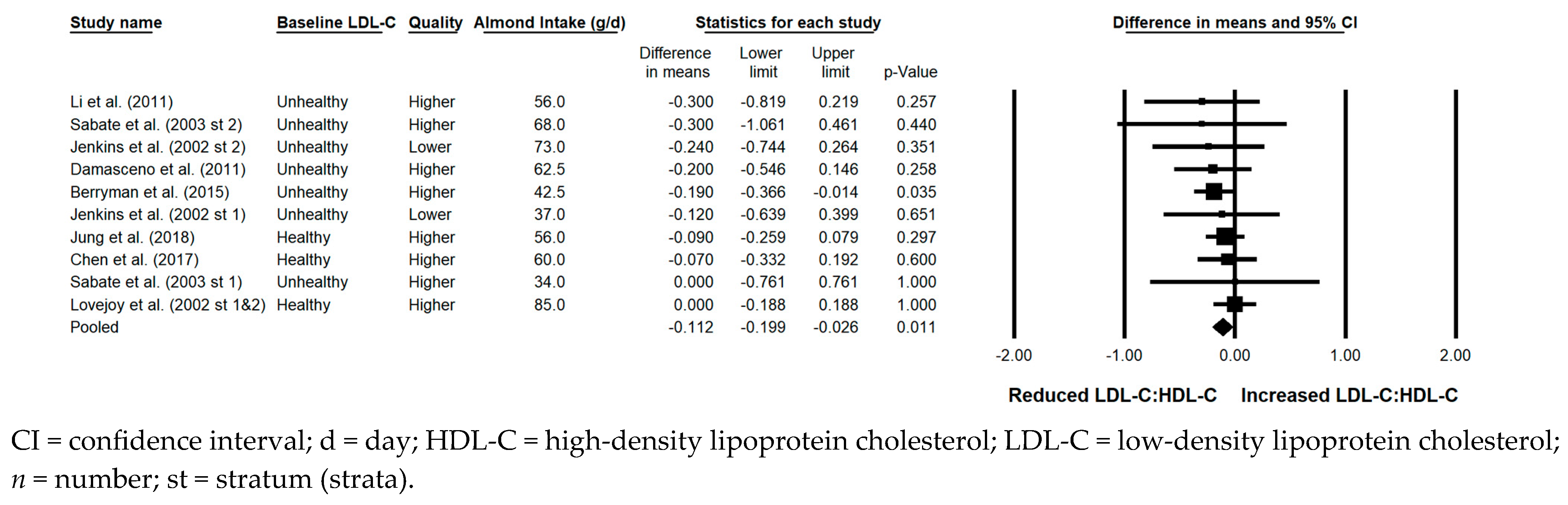 3.5. Effects of Almonds on Fasting Blood Lipids