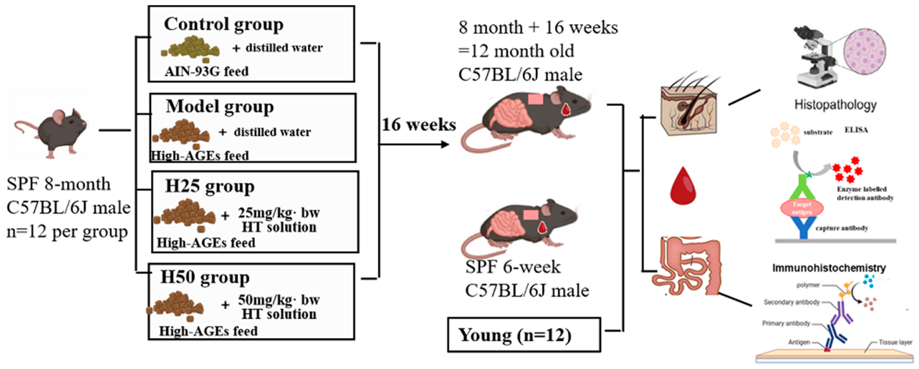 - Zhao, L.; Zhang, X.X.; He, L.Z.; Li, Y.B.; Yu, Y.; Lu, Q.; Liu, R. Diet with high content of advanced glycation end products induces oxidative stress damage and systemic inflammation in experimental mice: Protective effect of peanut skin procyanidins. Food Sci. Hum. Wellness 2024, 13, 3570–3581. [Google Scholar] [CrossRef]