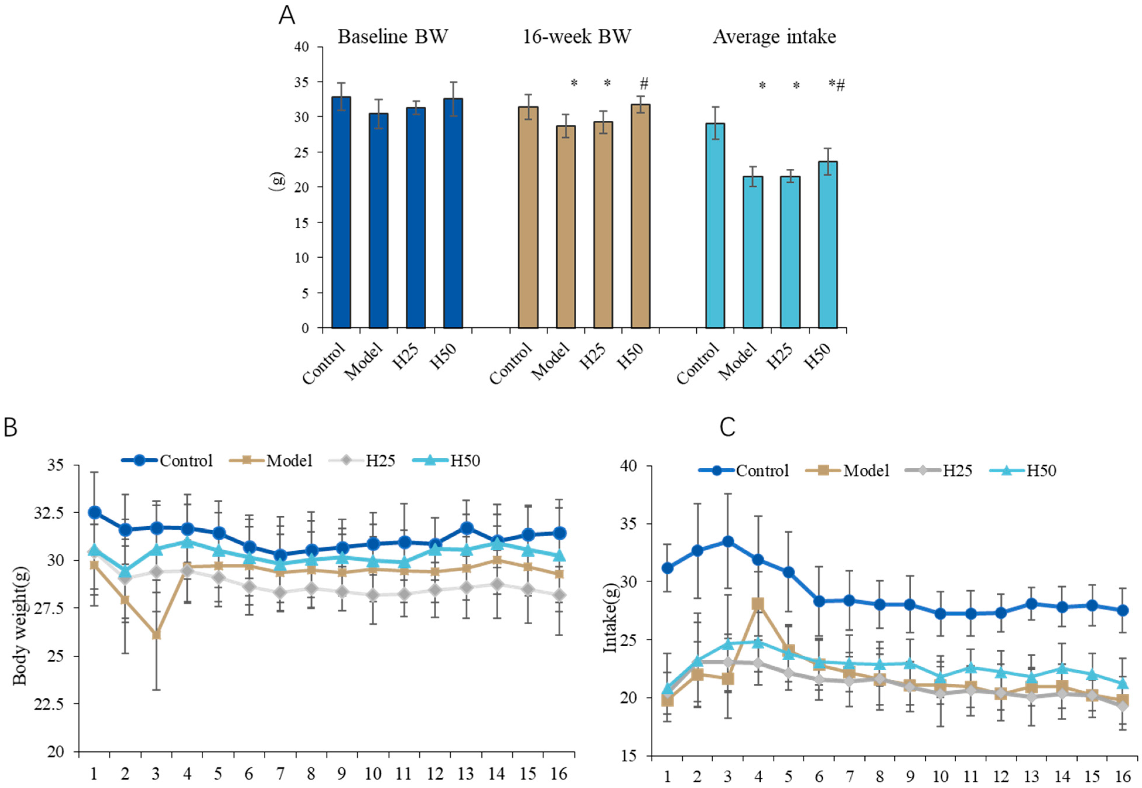 Changes in the Body Weight and Food Intake of Mice