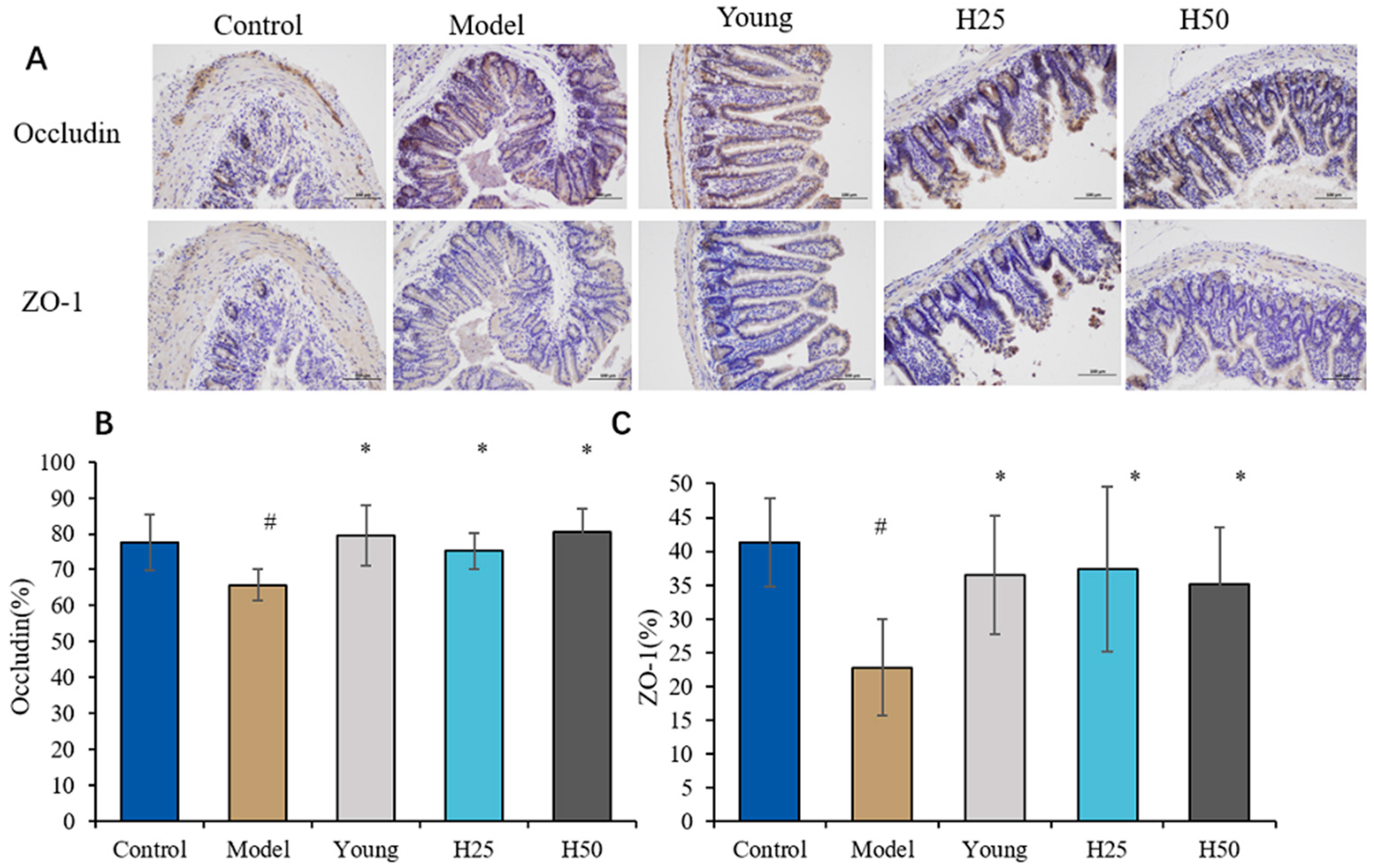 2.10. Intestinal Morphology and Barrier Function Evaluation