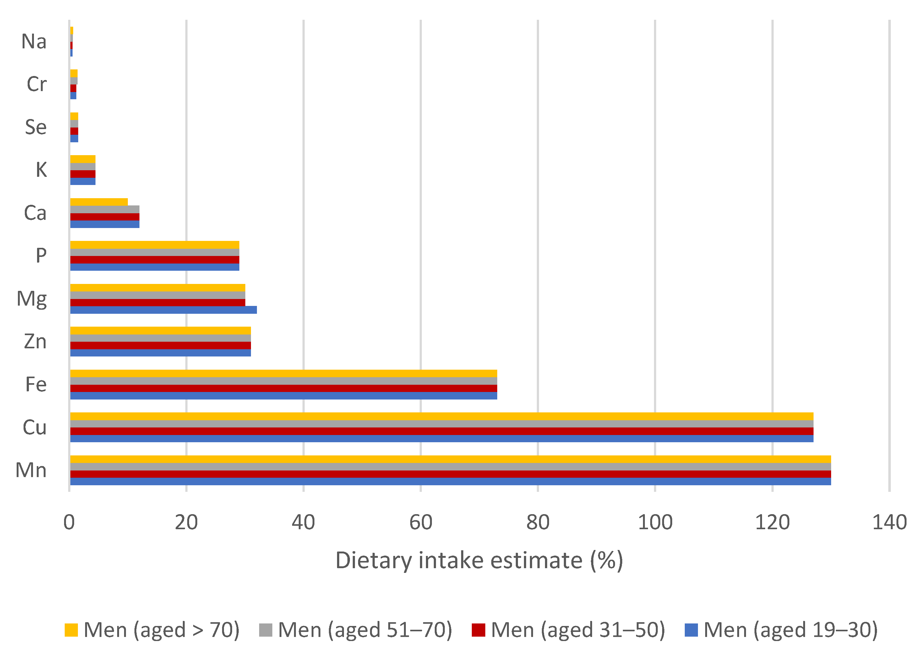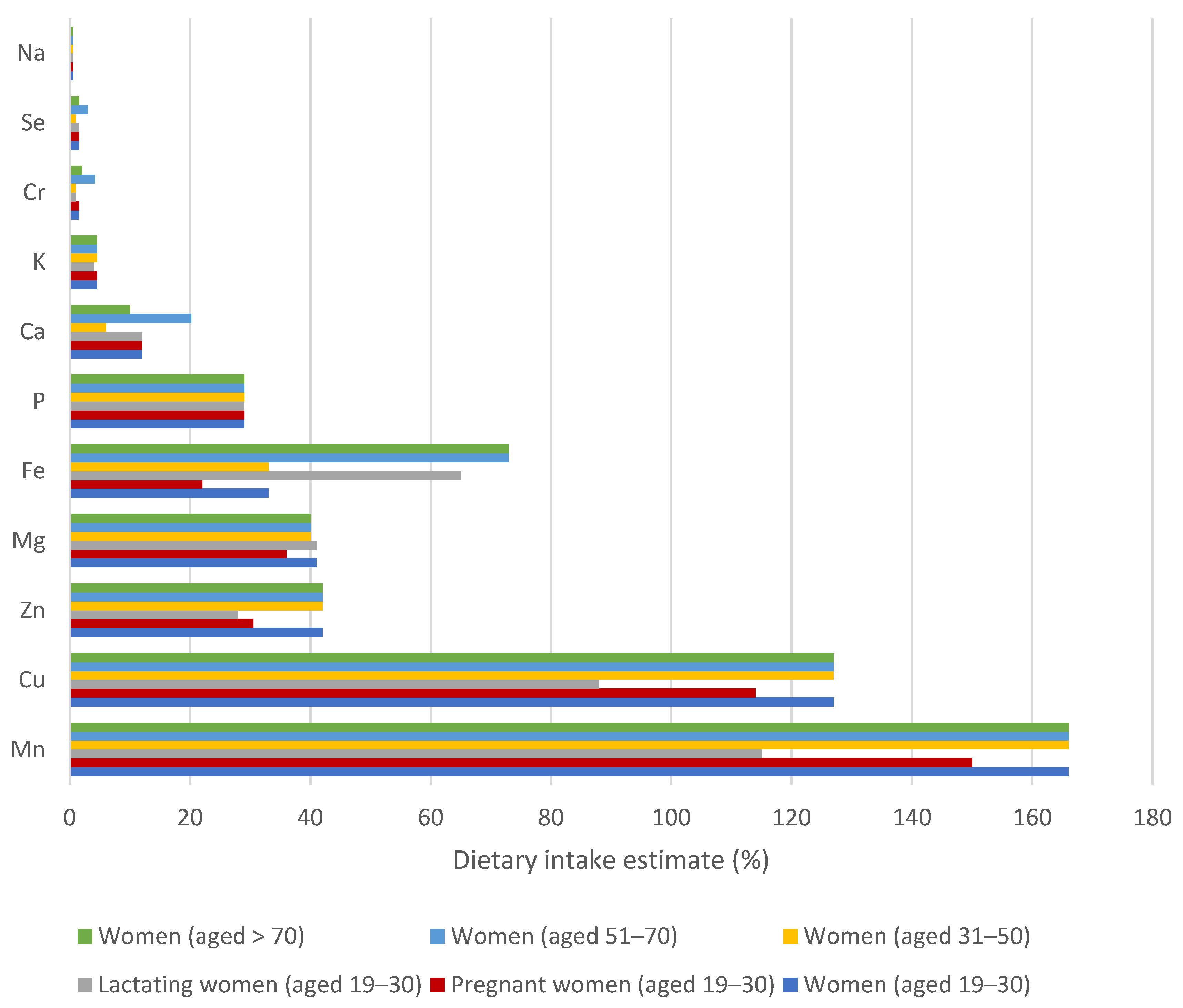 3.3. Evaluation of Dietary Intake Estimates to Reference Values for Essential Elements