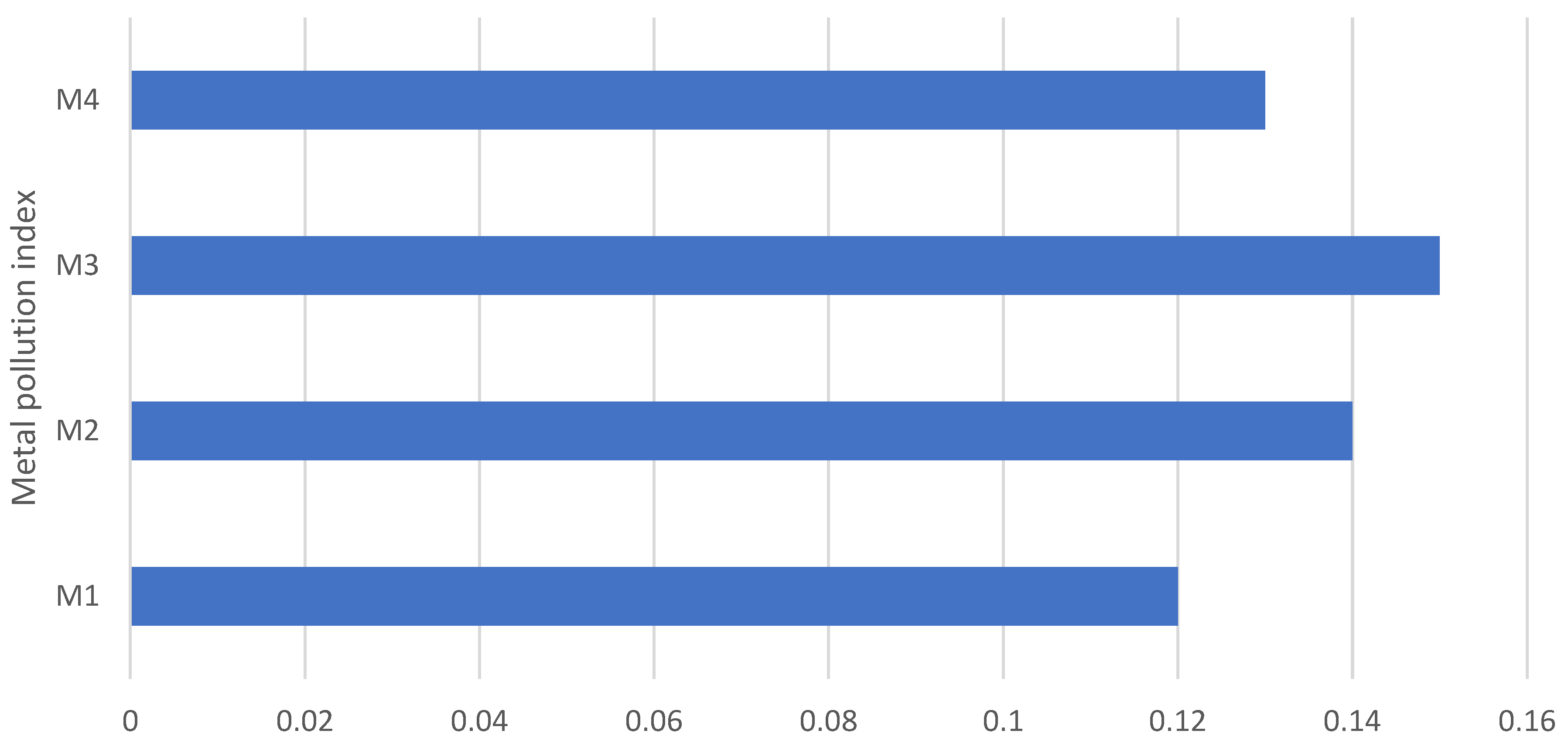 3.5. Results of the Evaluation of the Metal Pollution Index