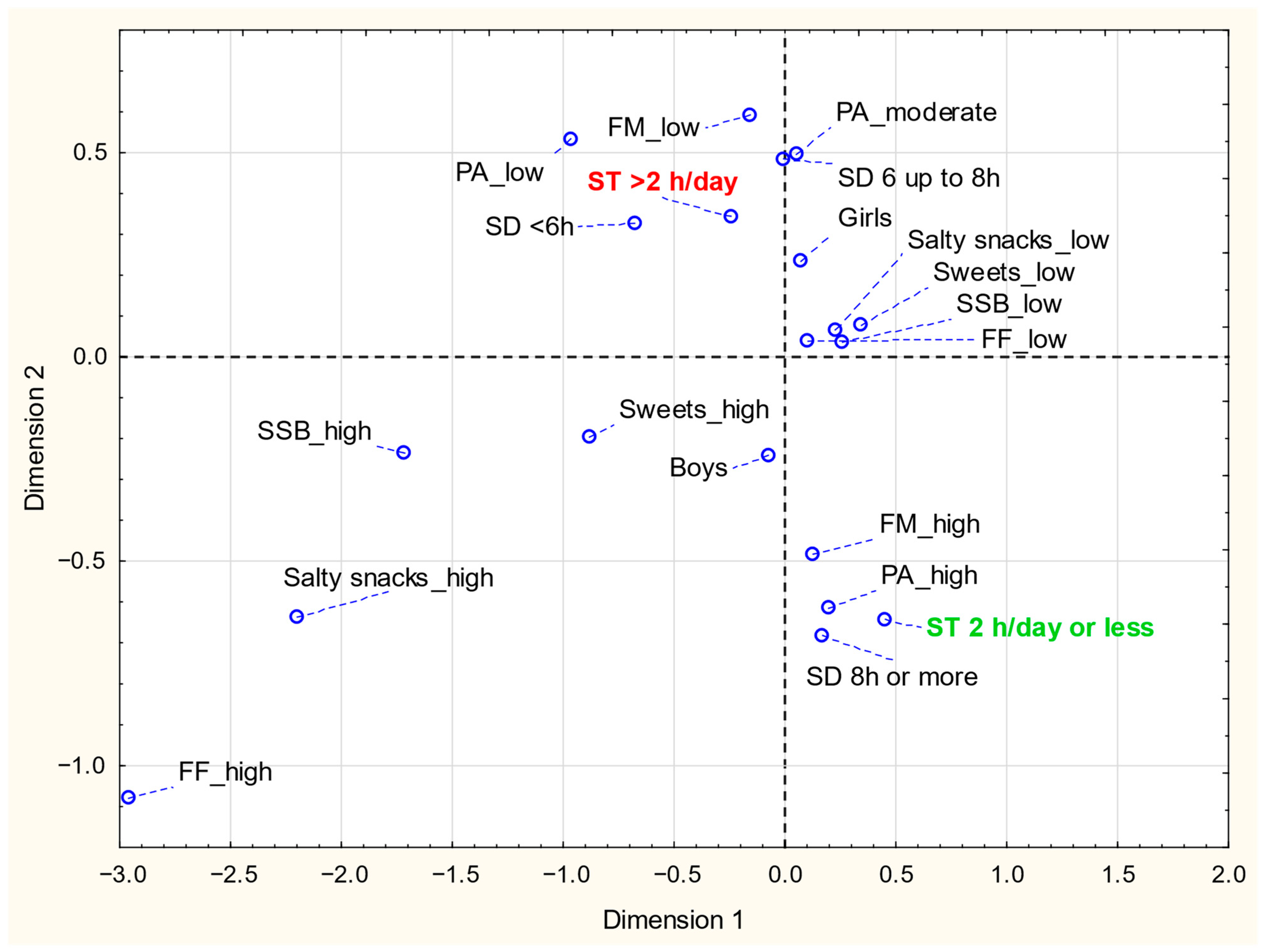 - Myszkowska-Ryciak, J.; Harton, A.; Lange, E.; Laskowski, W.; Wawrzyniak, A.; Hamulka, J.; Gajewska, D. Reduced Screen Time is Associated with Healthy Dietary Behaviors but Not Body Weight Status among Polish Adolescents. Report from the Wise Nutrition—Healthy Generation Project. Nutrients 2020, 12, 1323. [Google Scholar] [CrossRef]