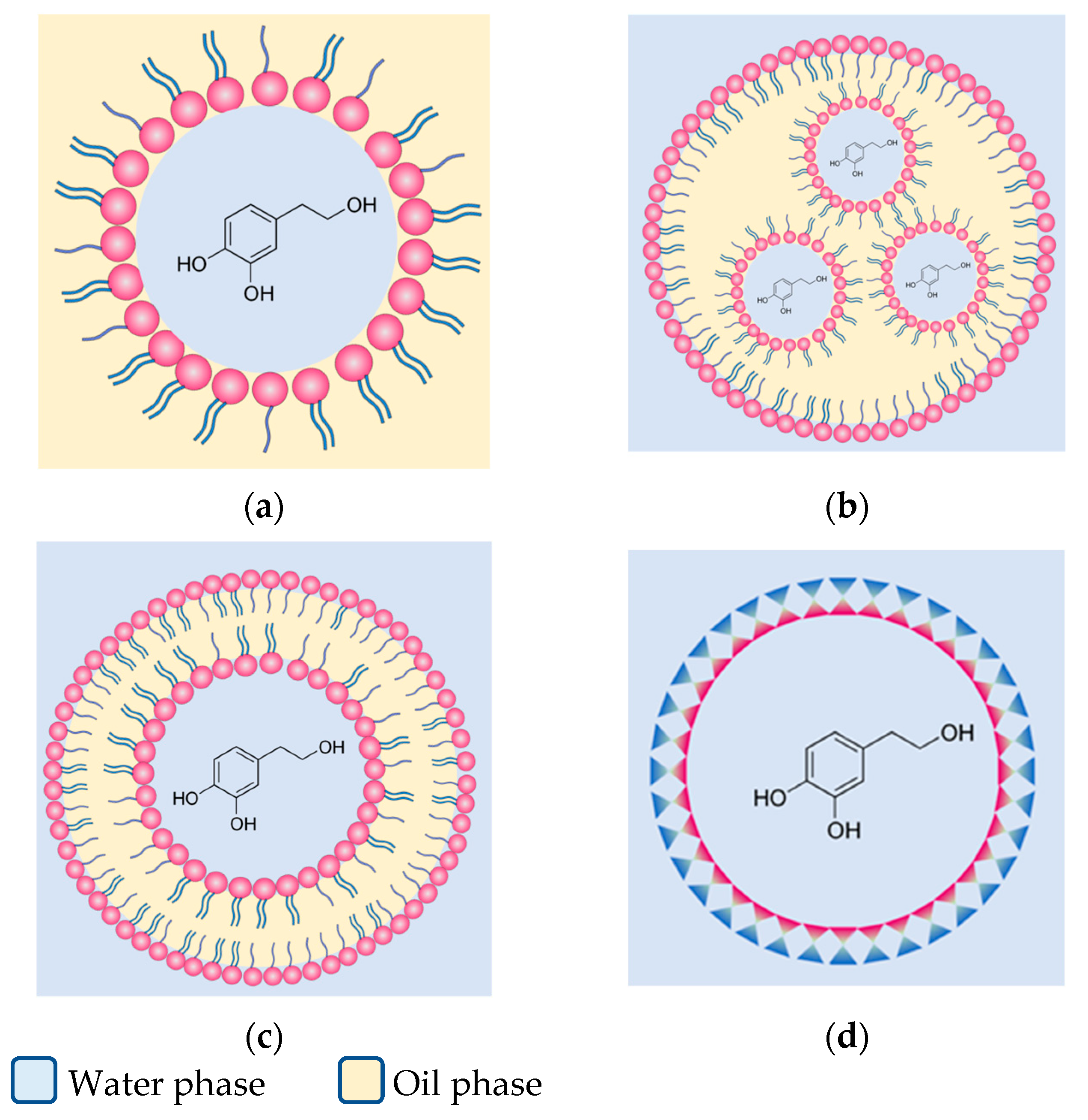 - Chatzidaki, M.D.; Arik, N.; Monteil, J.; Papadimitriou, V.; Leal-Calderon, F.; Xenakis, A. Microemulsion versus Emulsion as Effective Carrier of Hydroxytyrosol. Colloids Surf. B-Biointerfaces 2016, 137, 146–151. [Google Scholar] [CrossRef]