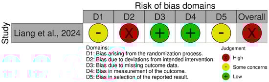 The risk of bias assessment for the two human studies included in this review was conducted using two different tools. For the randomized trial by Liang et al. [12], the Cochrane RoB 2 was applied. For the non-randomized study by Pramana et al. [13], the ROBINS-I V2 tool was used.