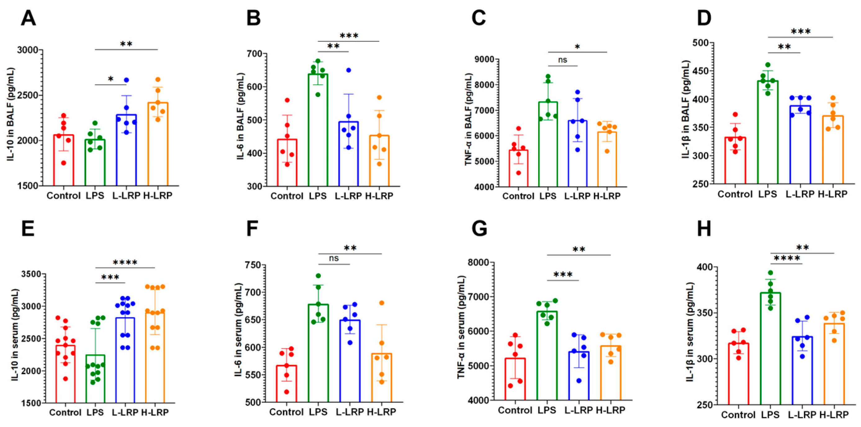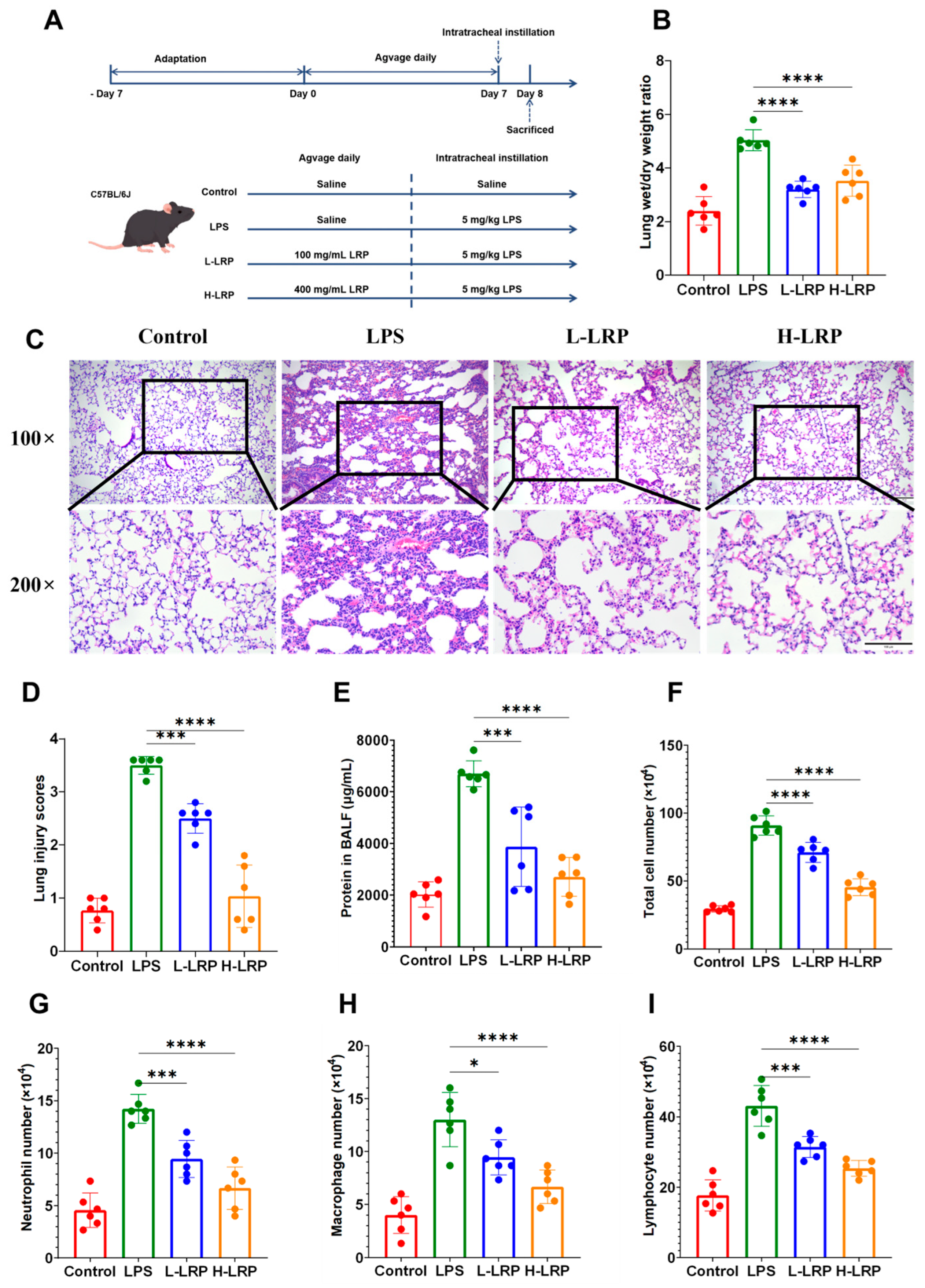 3.4. LRP Alleviated Inflammatory Responses in ALI Mice