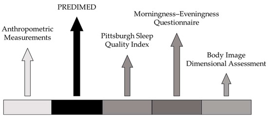 The Italian version of the PREvención con Dieta MEDiterránea (PREDIMED) questionnaire was used to assess adherence to the Mediterranean diet [32]. PREDIMED is a 14-item questionnaire in which an adequate consumption of typical traditional Mediterranean foods and low consumption of foods that are not characteristic of the traditional Mediterranean diet results in one point. The PREDIMED score was calculated as the sum of all the points attributed to the items. Scores ranged from 0 (low adherence) to ≥10 (high adherence).