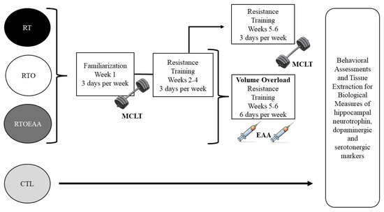 - Jahangiri, Z.; Gholamnezhad, Z.; Hosseini, M.; Beheshti, F.; Kasraie, N. The effects of moderate exercise and overtraining on learning and memory, hippocampal inflammatory cytokine levels, and brain oxidative stress markers in rats. J. Physiol. Sci. 2019, 69, 993–1004. [Google Scholar] [CrossRef] [PubMed] [PubMed Central]