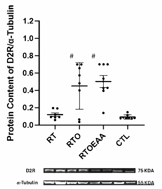 - Tyler, J.; Podaras, M.; Richardson, B.; Roeder, N.; Hammond, N.; Hamilton, J.; Blum, K.; Gold, M.; Baron, D.A.; Thanos, P.K. High-intensity interval training exercise increases dopamine D2 levels and modulates brain dopamine signaling. Front. Public Health 2023, 11, 1257629. [Google Scholar] [CrossRef]