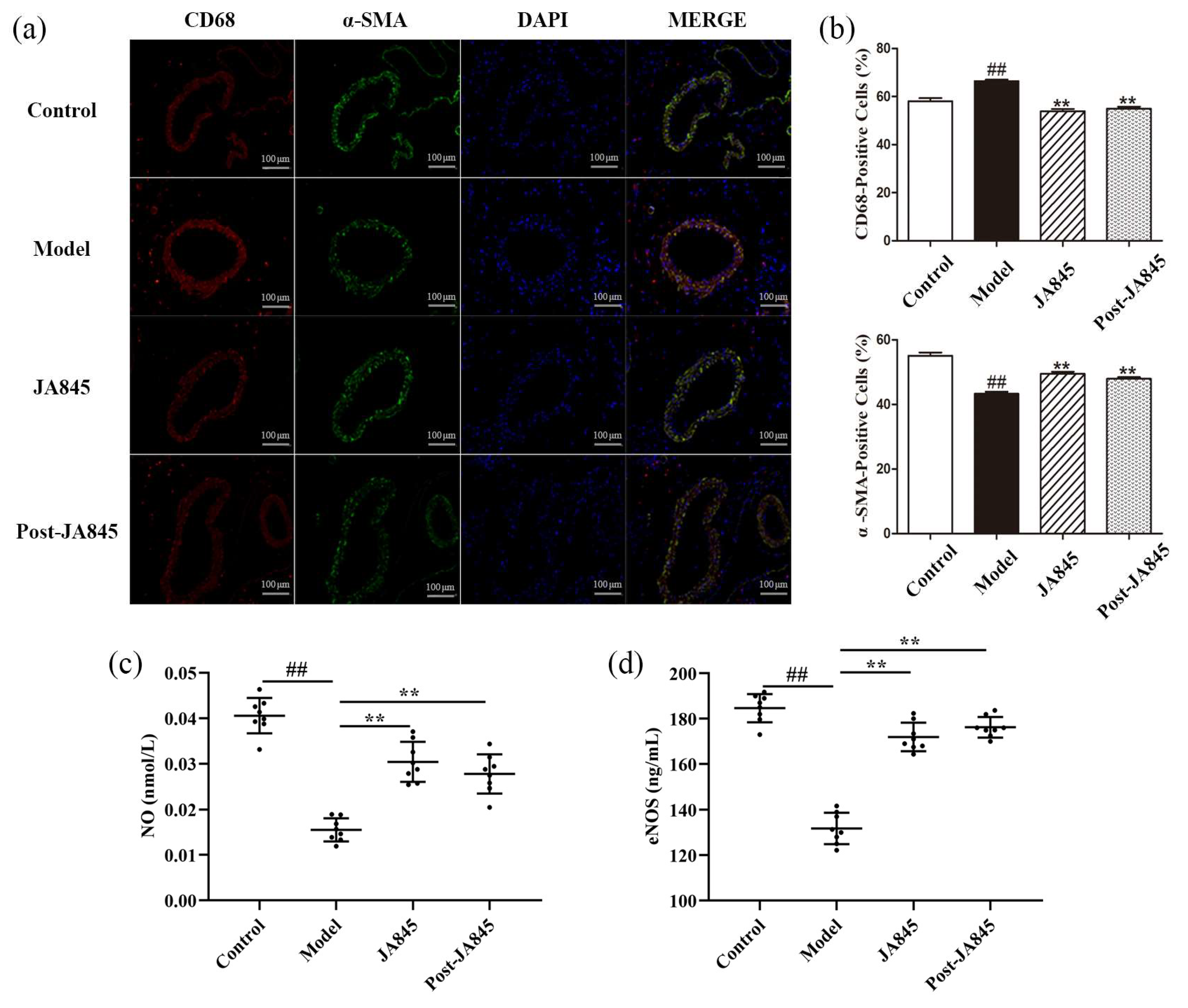 3.2. W. coagulans JA845 Postbiotics Improves the Pathological Characteristics of the Abdominal Aorta in AS Mice