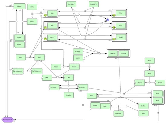 A diagram of cytoskeletal regulation by the Rho GTPase pathway (source: https://pantherdb.org).