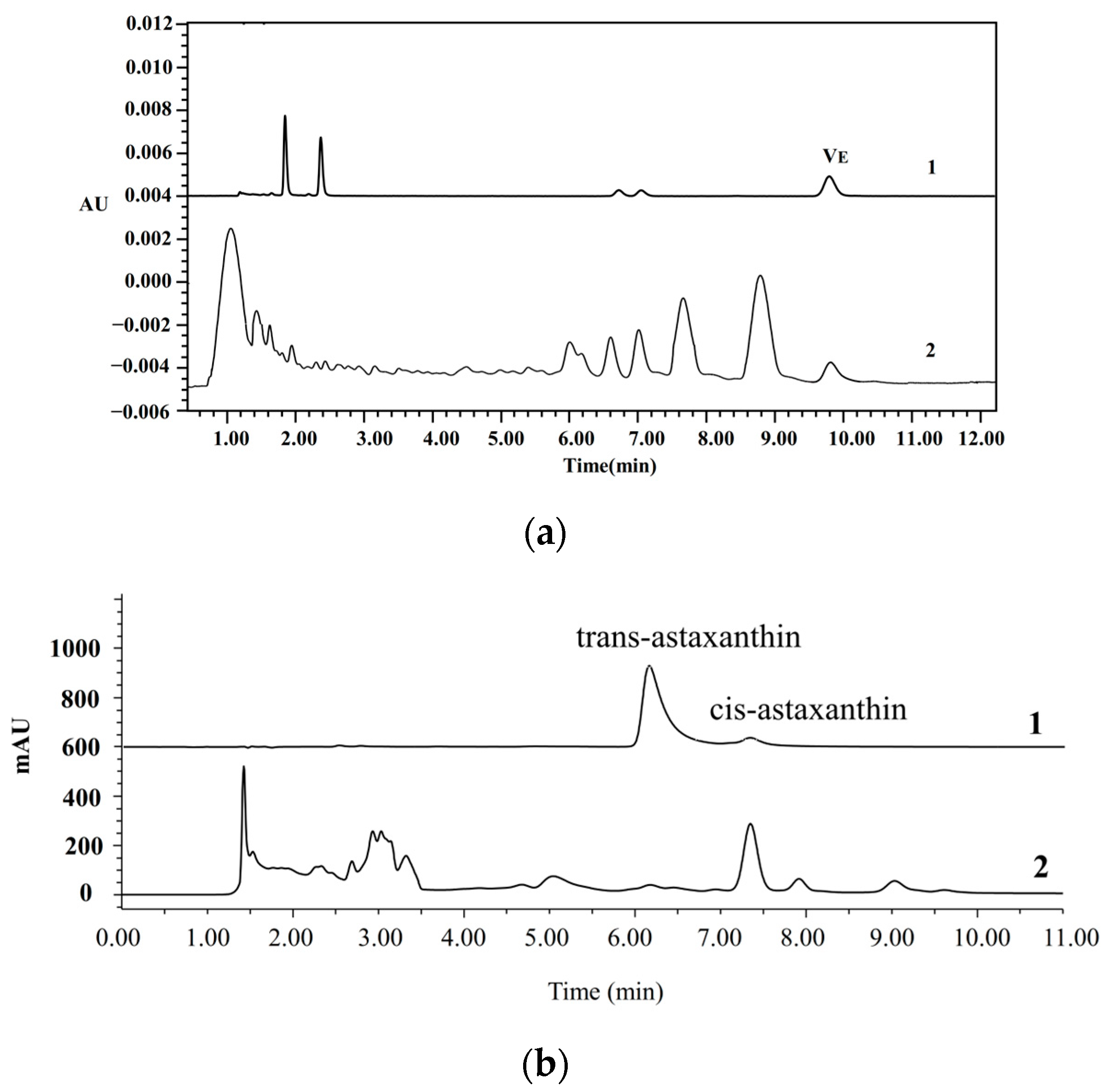 - Bjørklund, G.; Gasmi, A.; Lenchyk, L.; Shanaida, M.; Zafar, S.; Mujawdiya, P.K.; Lysiuk, R.; Antonyak, H.; Noor, S.; Akram, M.; et al. The Role of Astaxanthin as a Nutraceutical in Health and Age-Related Conditions. Molecules 2022, 27, 7167. [Google Scholar] [CrossRef]