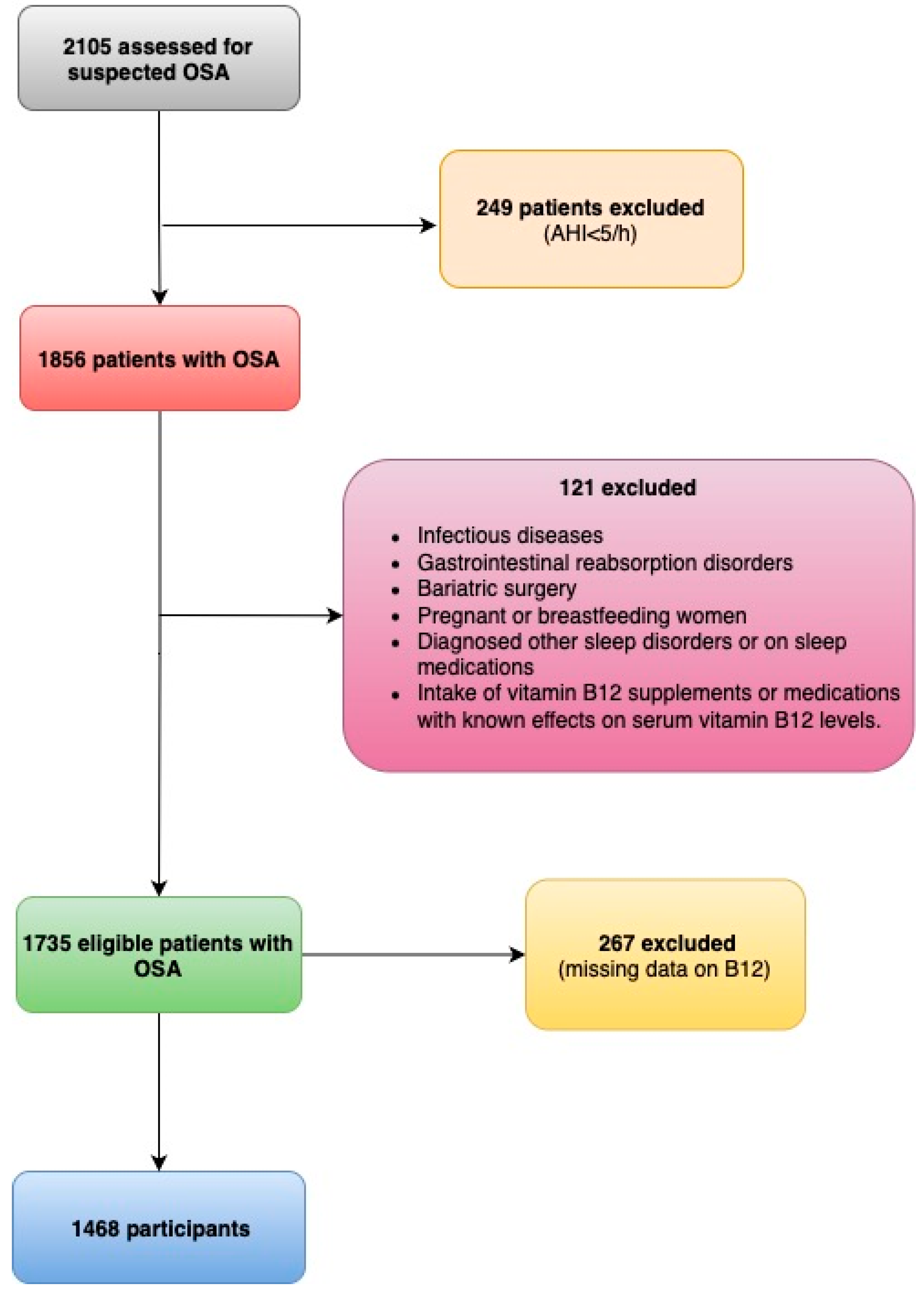 APA StyleBouloukaki, I., Christodoulakis, A., Vouis, T., Moniaki, V., Mavroudi, E., Kallergis, E., Tsiligianni, I., & Schiza, S. E. (2025). Association of Vitamin B12 Status with Polysomnographic Parameters and Cardiovascular Disease in Patients with Obstructive Sleep Apnoea. Nutrients, 17(19), 3079. https://doi.org/10.3390/nu17193079