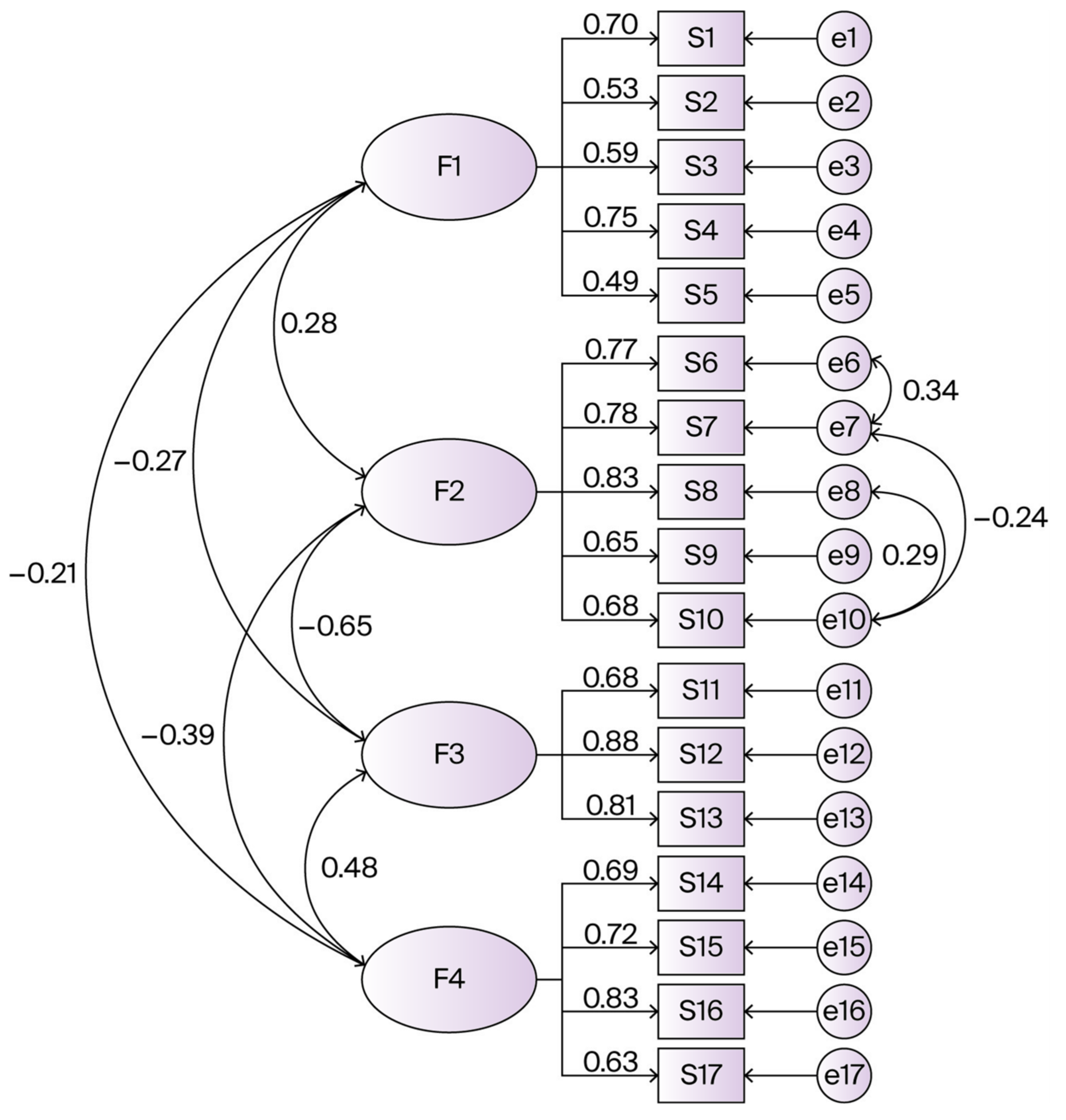 Item | Factor | Standardized Factor Loadings (λ) | Residual | R2 |