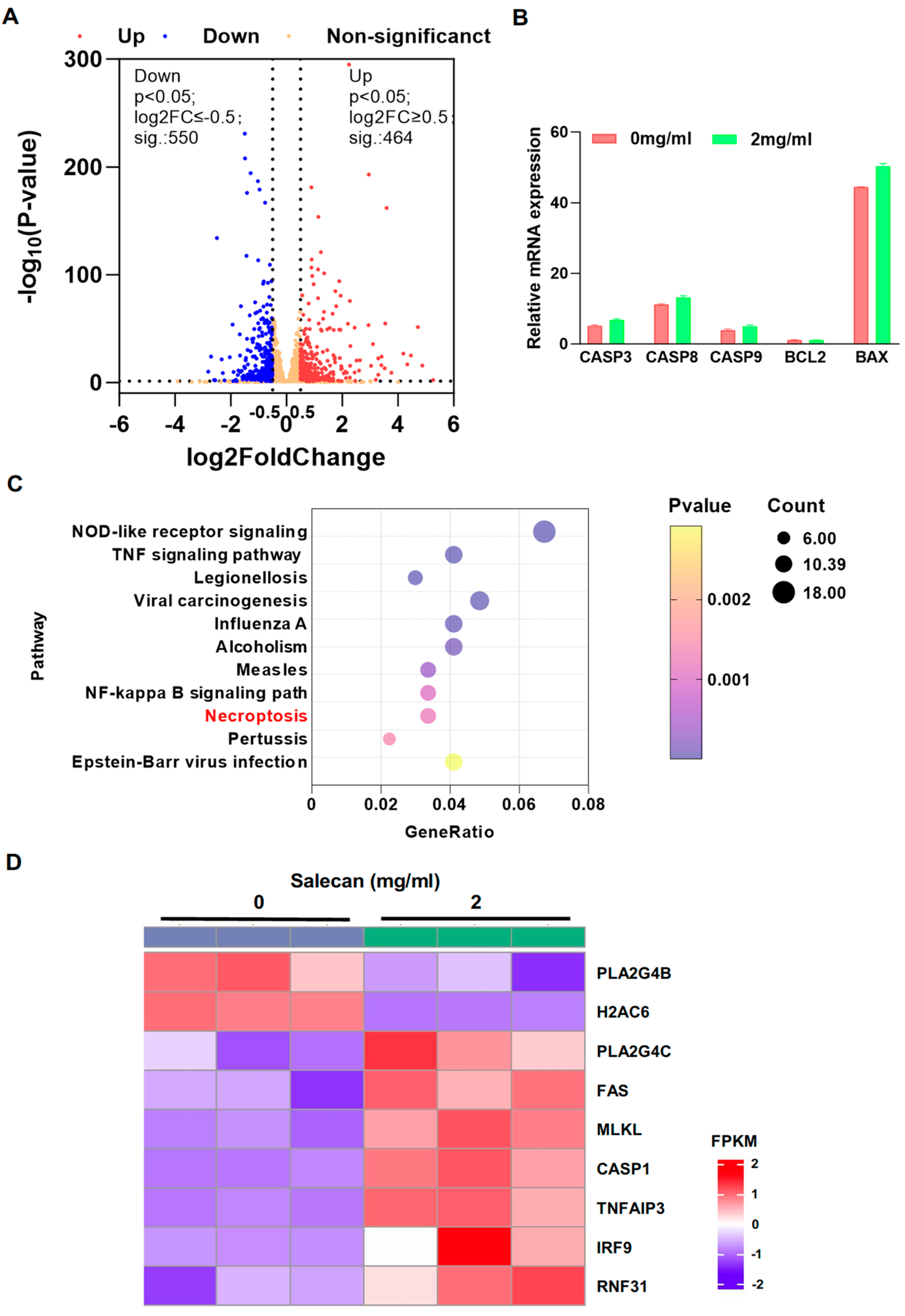 3.3. RNA-seq Analysis Reveals That Salecan Affects the Necroptosis Pathway, Not Apoptosis, in Pancreatic Cancer Cells