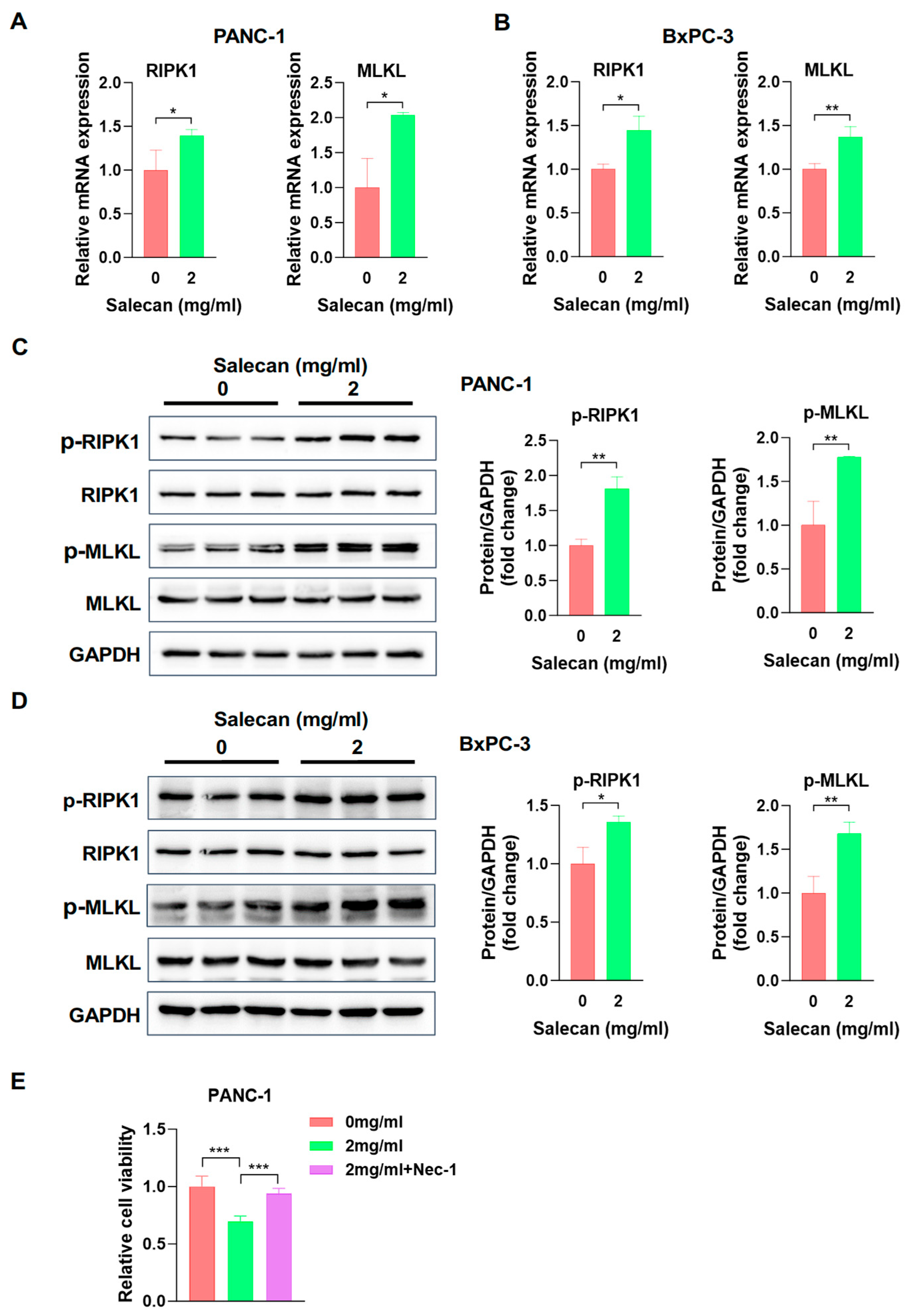 Chicago/Turabian StyleDu, Wenya, Rong Xu, Pengfei Chen, Jianxia Wen, Luchuanyang Sun, and Xianggui Chen. 2025. "Salecan Suppresses Pancreatic Cancer Progression by Promoting Necroptosis via the RIPK1/MLKL Pathway" Nutrients 17, no. 19: 3090. https://doi.org/10.3390/nu17193090
