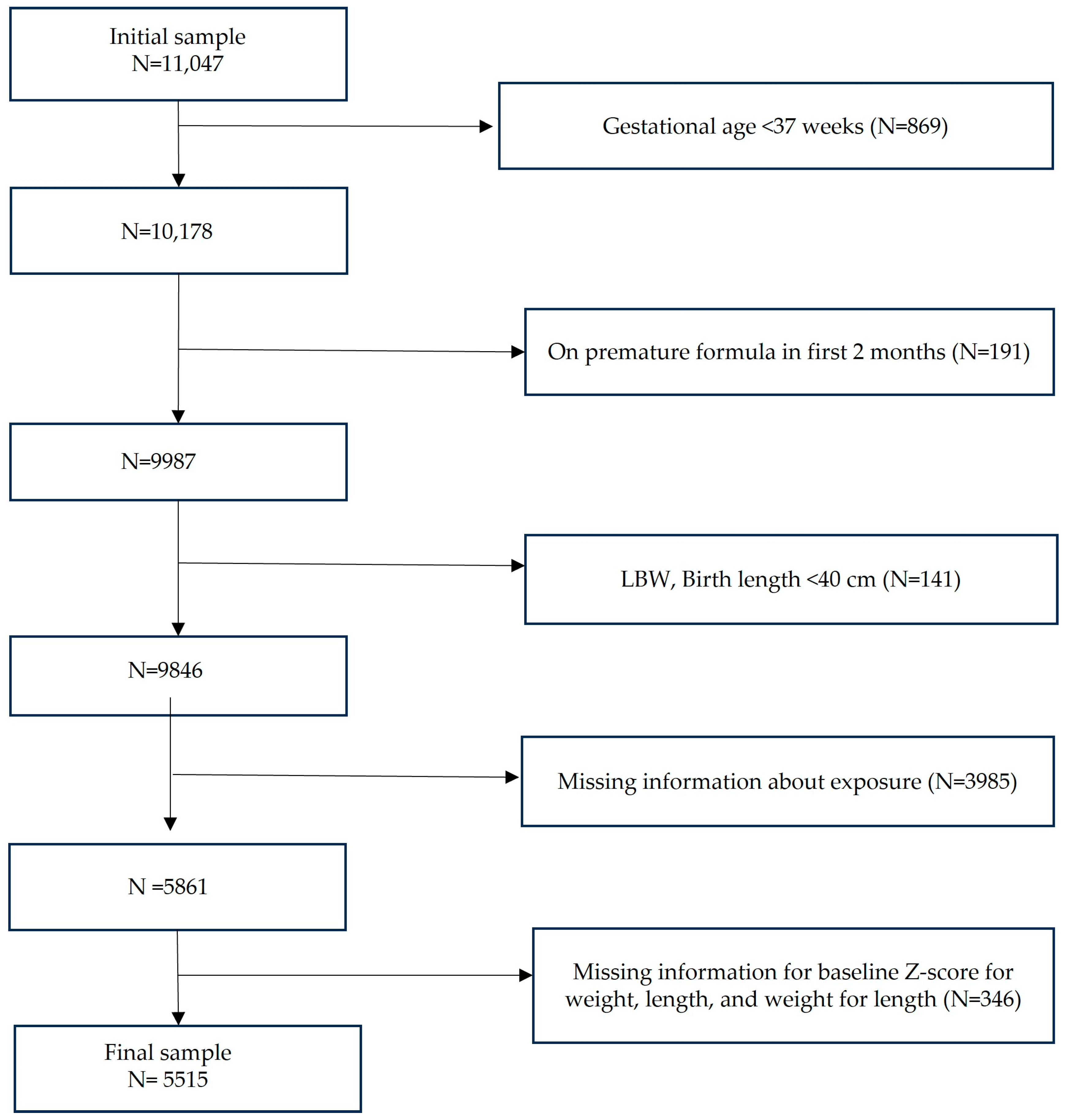 APA StyleRani, U., Alwasila, R., Story, W. T., Ten Eyck, P., Hoberg, A., Santillan, D. A., & Imdad, A. (2025). Effects of Infant Formula Type on Early Childhood Growth Outcomes: A Retrospective Cohort Study. Nutrients, 17(19), 3111. https://doi.org/10.3390/nu17193111