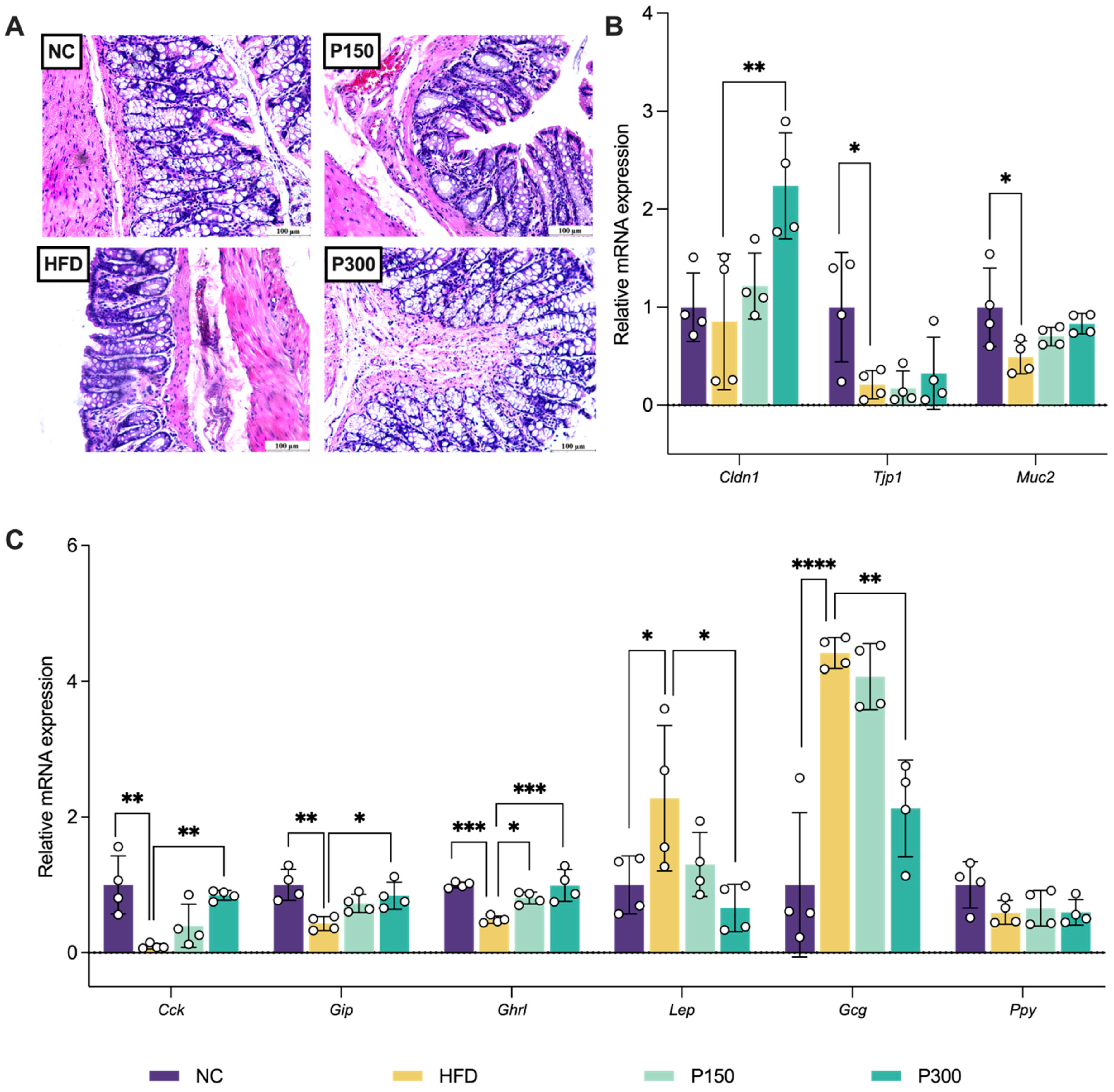 3.4. Propolis Effect on Colonic Structure and Enteroendocrine Hormone Secretion in HFD Rats