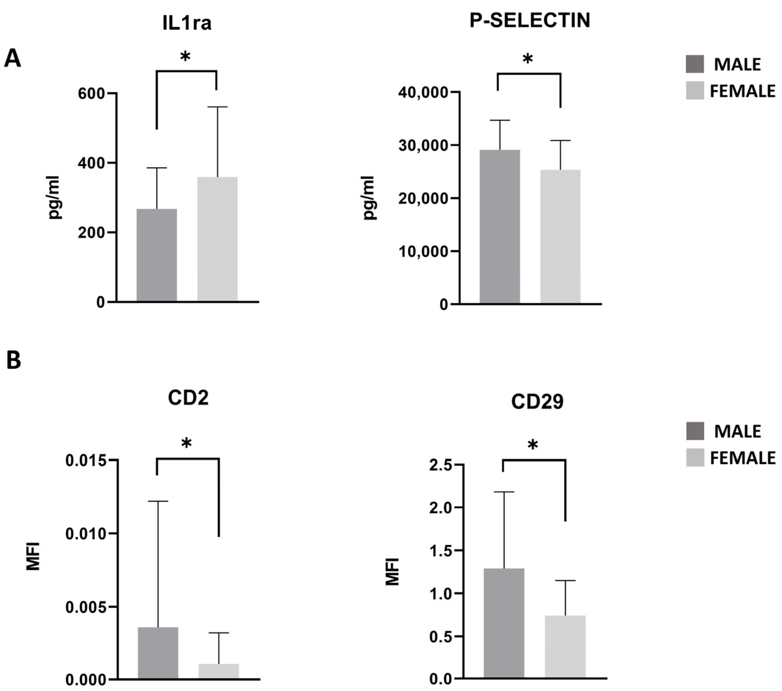 3.7. PRGF Characteristics in Male and Female Patients
