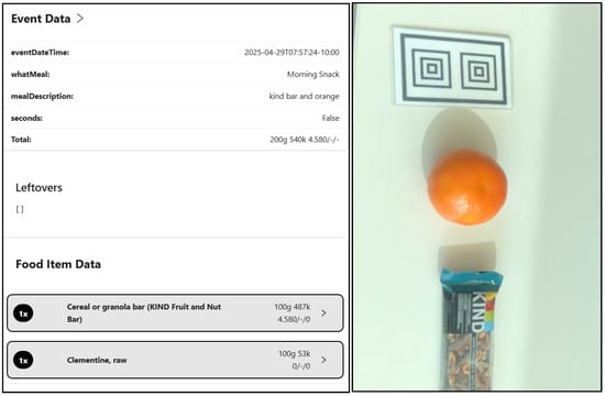 Example of a morning snack recorded by PortionSize Ed app through Data Capture and Analysis Platform (DCAP) using the reference marker.