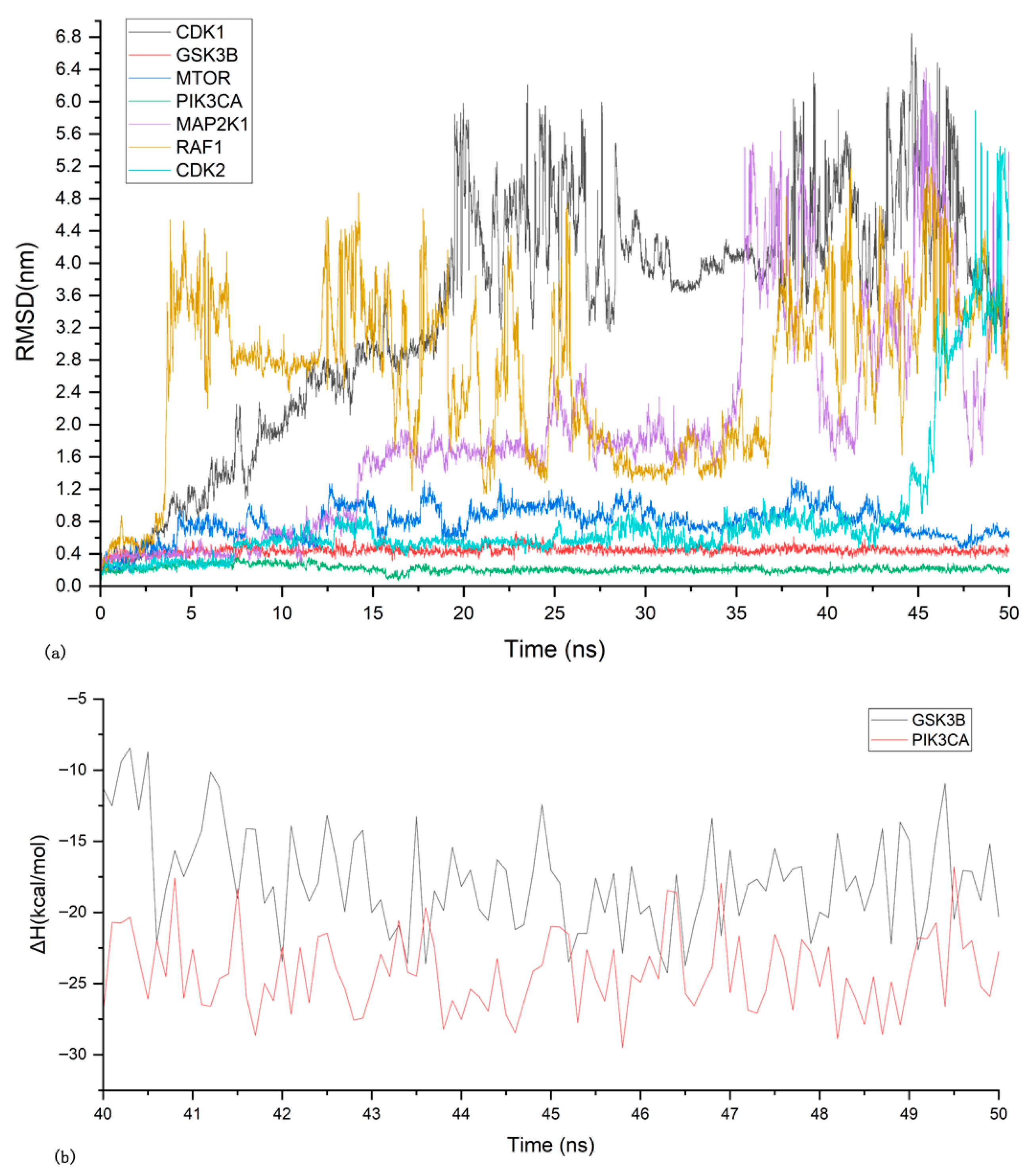 GSK3B | −5.30 | 12.35 | −17.66 | −52.39 | 40.71 | −5.98 | −15.03 | −37.35 |