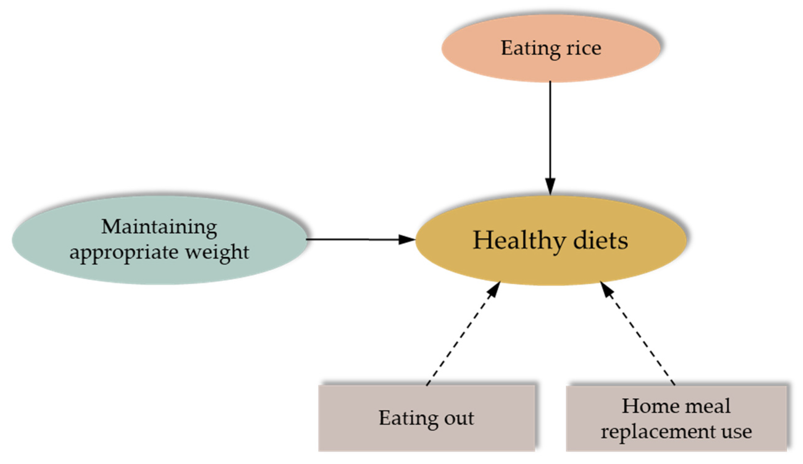 - Kibayashi, E.; Nakade, M.; Morooka, A. Association of a Healthy Dietary Habit with Dietary Attitudes for Lifestyle Disease Prevention and with Health Behavior. Eiyougakuzashi 2022, 80, 149–157. [Google Scholar] [CrossRef]
