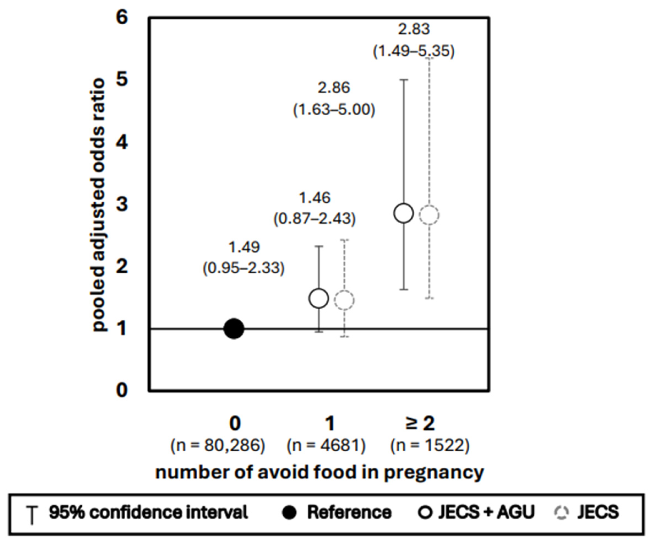 APA StyleFujiwara, K., Tamada, H., Imura, H., Matsuki, T., Furukawa, H., Natsume, N., Yamada, Y., Ebara, T., Kamijima, M., & The Japan Environment and Children’s Study (JECS) Group. (2025). Effects of Food Preferences and Supplement Intake During Pregnancy on the Cleft Lip and Palate Incidence: The Japan Environment and Children’s Study. Nutrients, 17(19), 3175. https://doi.org/10.3390/nu17193175