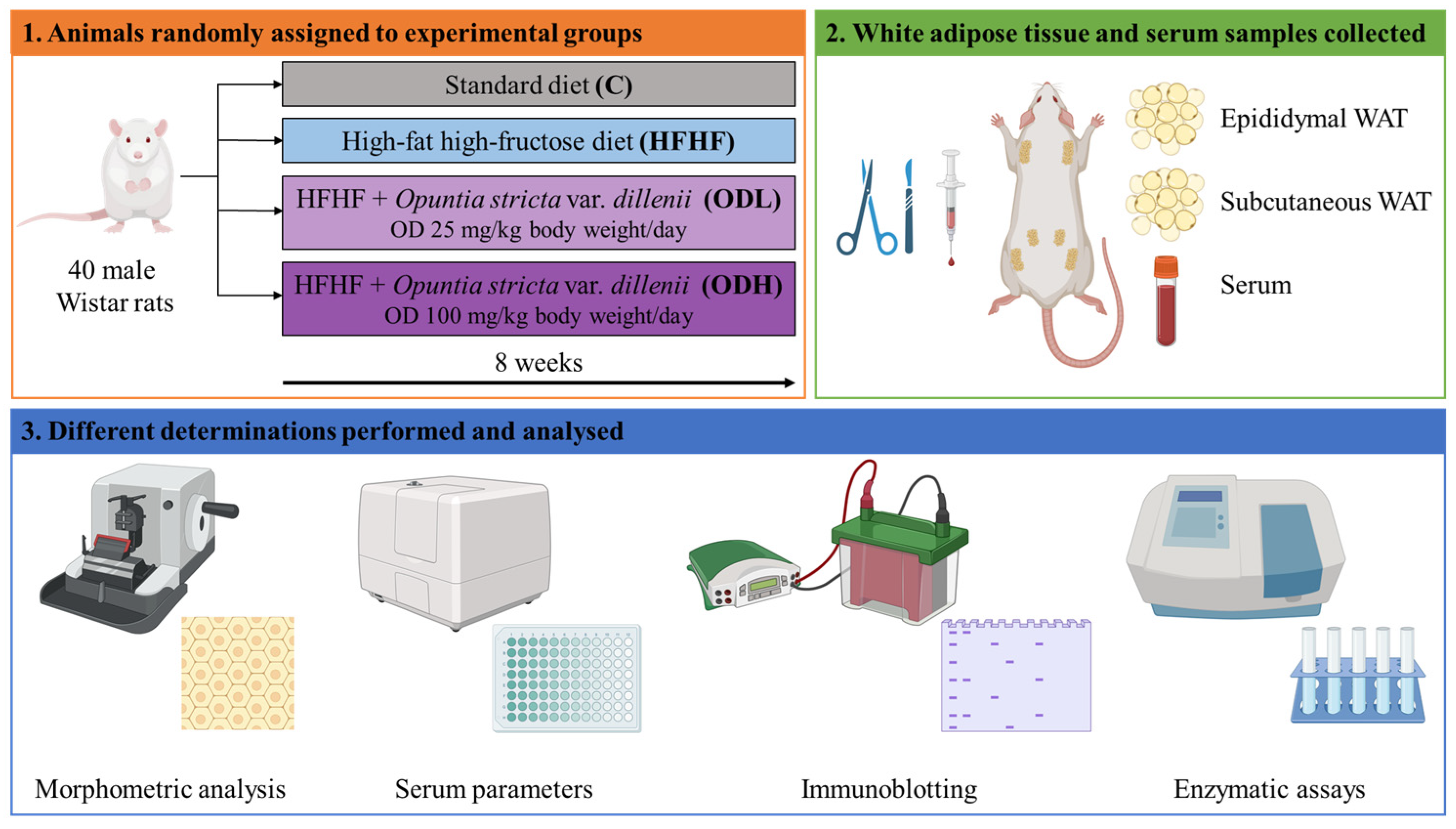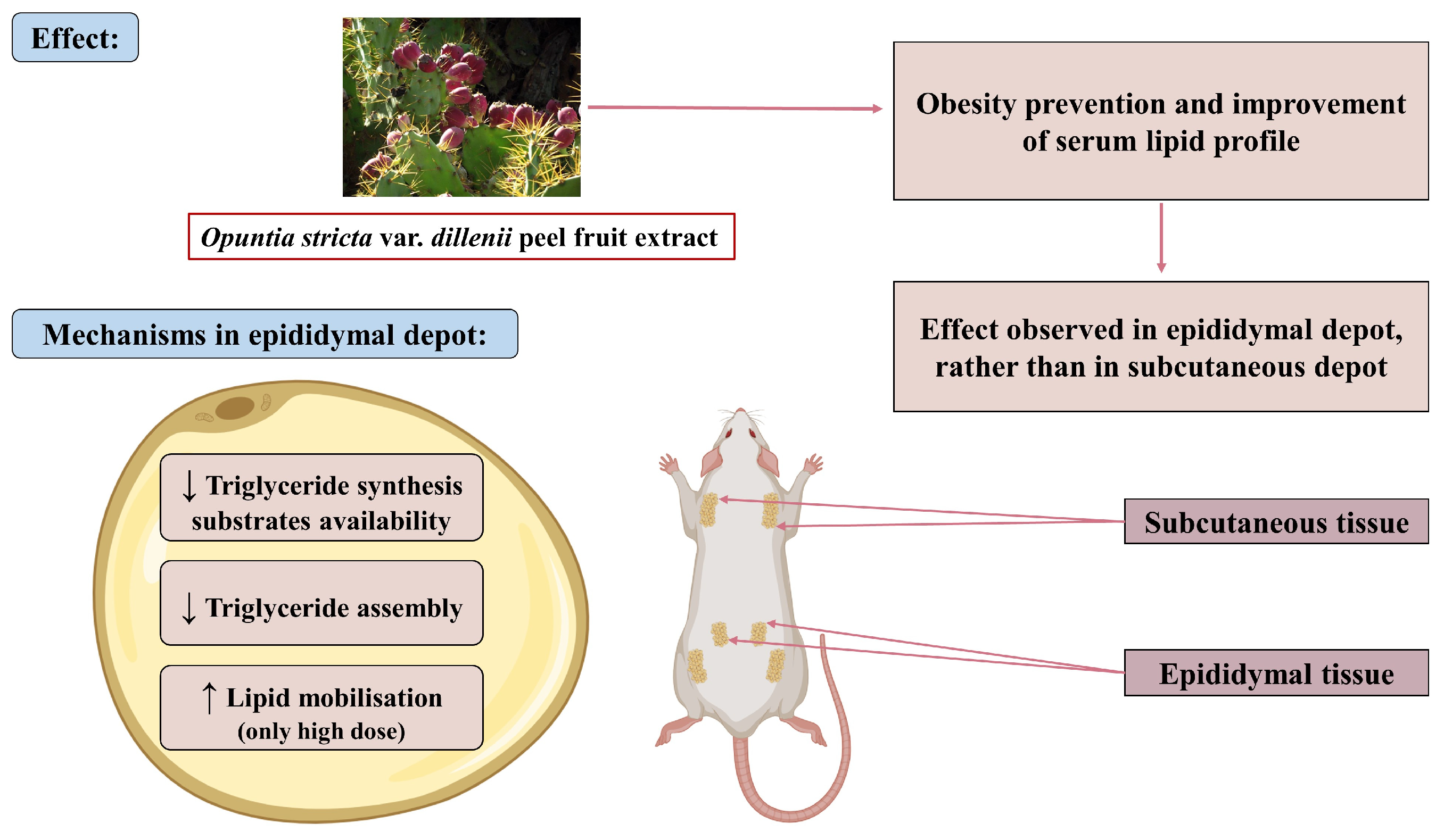 - Helies-Toussaint, C.; Fouche, E.; Naud, N.; Blas-Y-Estrada, F.; Del Socorro Santos-Diaz, M.; Negre-Salvayre, A.; Barba de la Rosa, A.P.; Gueraud, F. Opuntia Cladode Powders Inhibit Adipogenesis in 3 T3-F442A Adipocytes and a High-Fat-Diet Rat Model by Modifying Metabolic Parameters and Favouring Faecal Fat Excretion. BMC Complement. Med. Ther. 2020, 20, 33. [Google Scholar] [CrossRef] [PubMed]