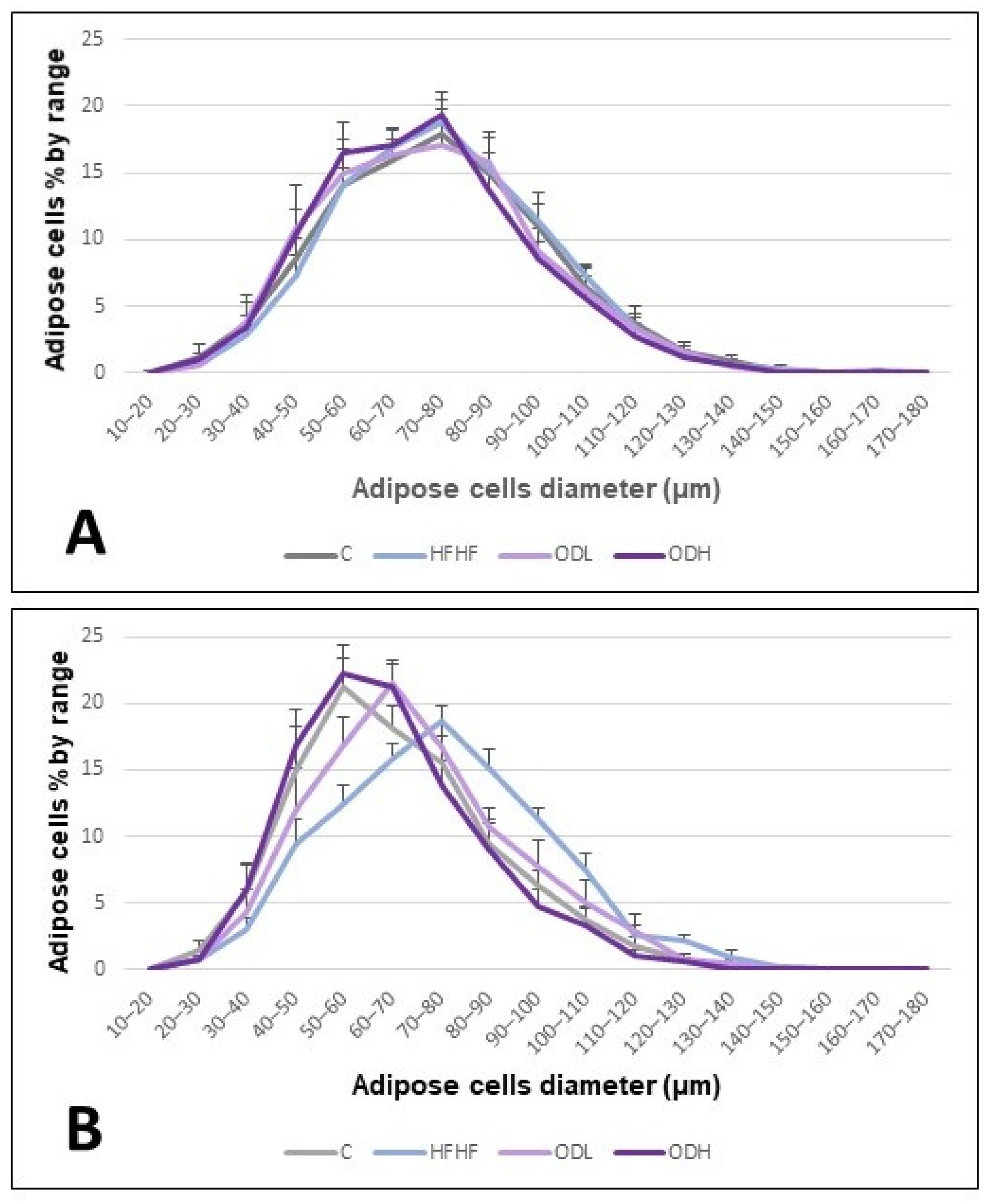 White adipose index (%) | 9.6 ± 0.5 c | 12.7 ± 0.3 a | 11.1 ± 0.7 bc | 11.5 ± 0.6 ab | p < 0.05 |