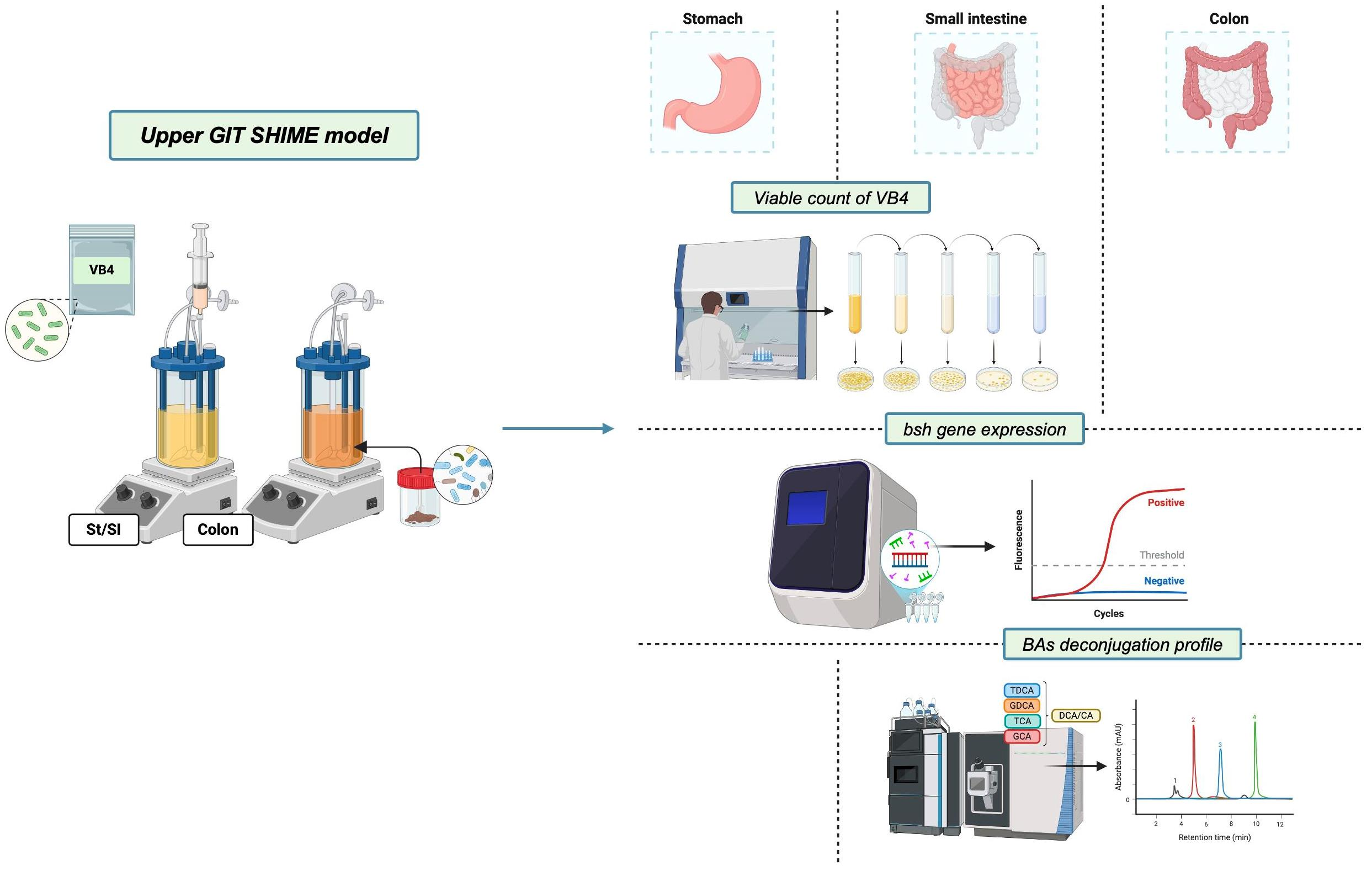 Vaccalluzzo, A.; Agolino, G.; Pino, A.; Cristofolini, M.; Tagliazucchi, D.; Cattivelli, A.; Caggia, C.; Solieri, L.; Randazzo, C.L. Gastrointestinal Survivability of a BSH-Positive Lacticaseibacillus rhamnosus VB4 Strain and Its Effect on Bile Acid Deconjugation in a Dynamic In Vitro Gut Model. Nutrients 2025, 17, 3179. https://doi.org/10.3390/nu17193179