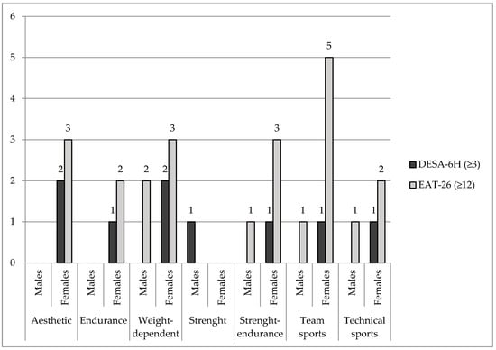 - Kampouri, D.; Kotopoulea-Nikolaidi, M.; Daskou, S.; Giannopoulou, I. Prevalence of disordered eating in elite female athletes in team sports in Greece. Eur. J. Sport Sci. 2019, 19, 1267–1275. [Google Scholar] [CrossRef]