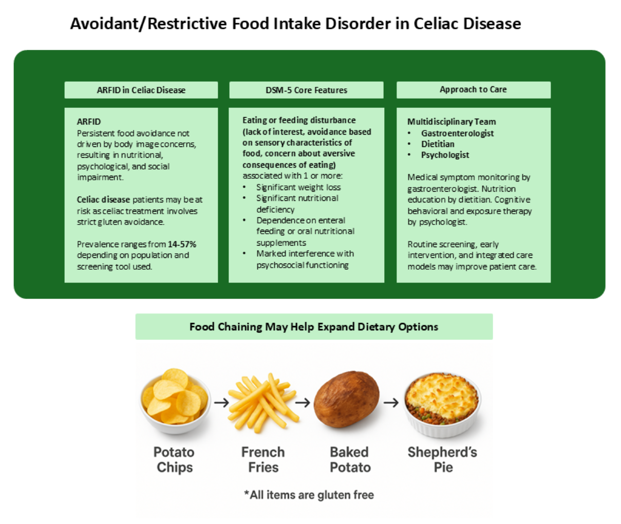 Close follow-up and a comprehensive approach to address both the physical and psychological aspects of CeD and ARFID is essential for optimizing overall health outcomes [