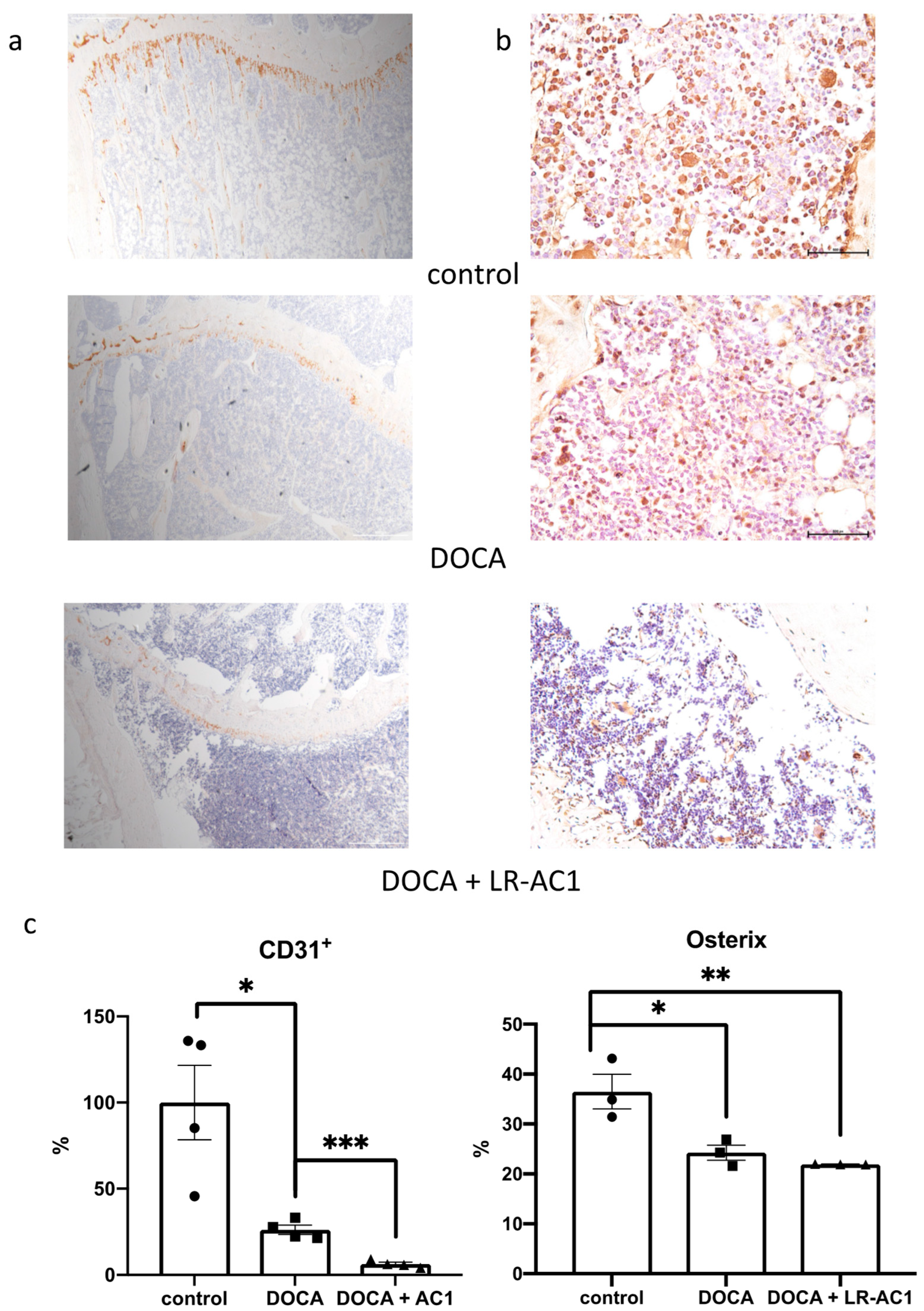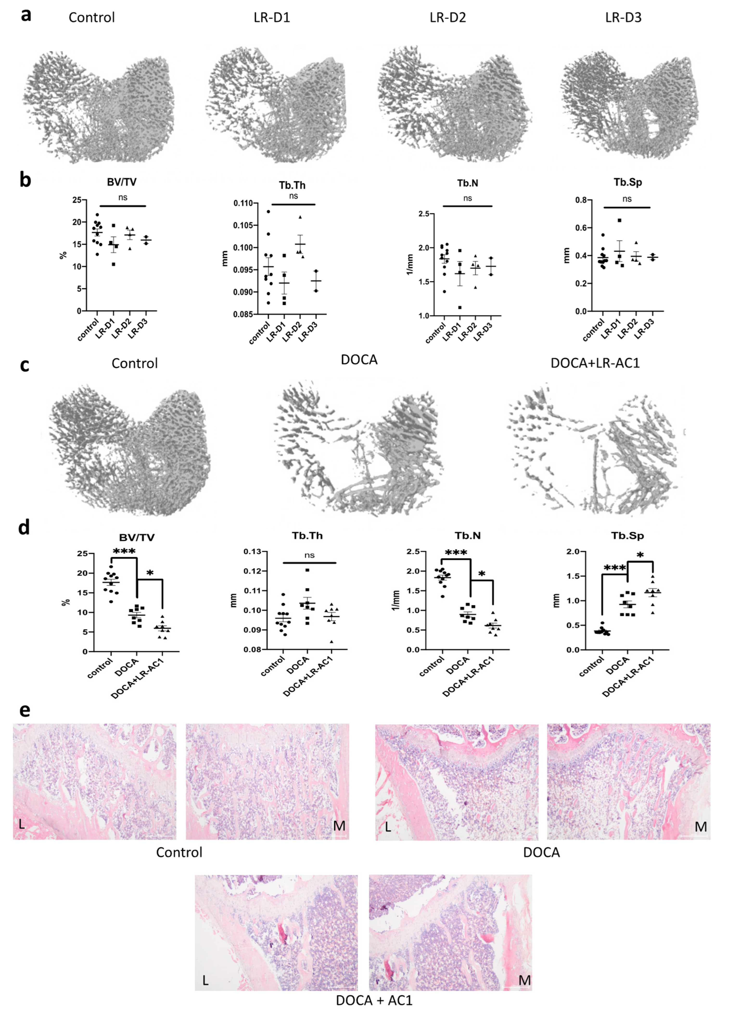 20]. Unexpectedly, LR-AC1 not only failed to improve bone loss induced by DOCA but also aggravated bone loss. Unlike the positive effects reported in previous studies using other