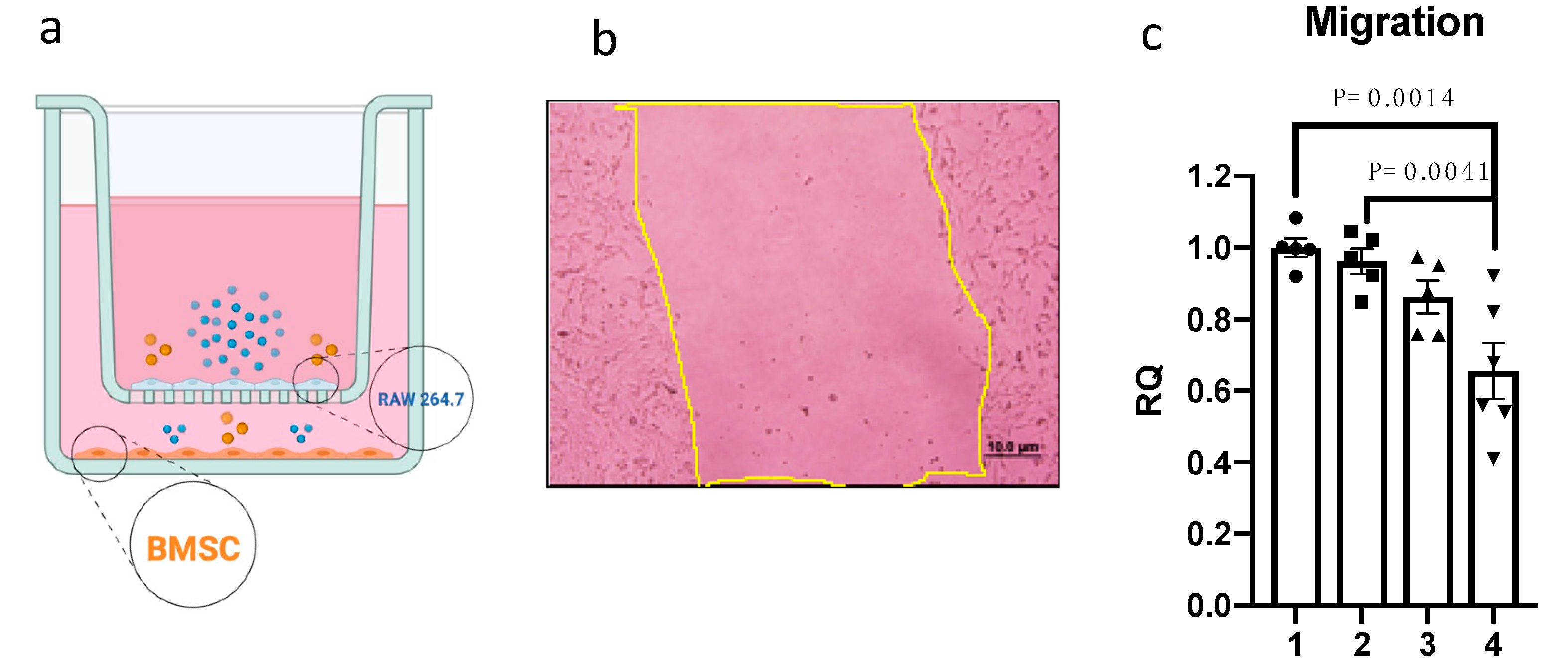 4 cells/well) cells were seeded in the transwell insert for incubation at 37 °C for 24 h. A 1000 µL pipette tip was used to create a gap in the BMSC culture layer. The culture medium was removed, and treatment mediums (