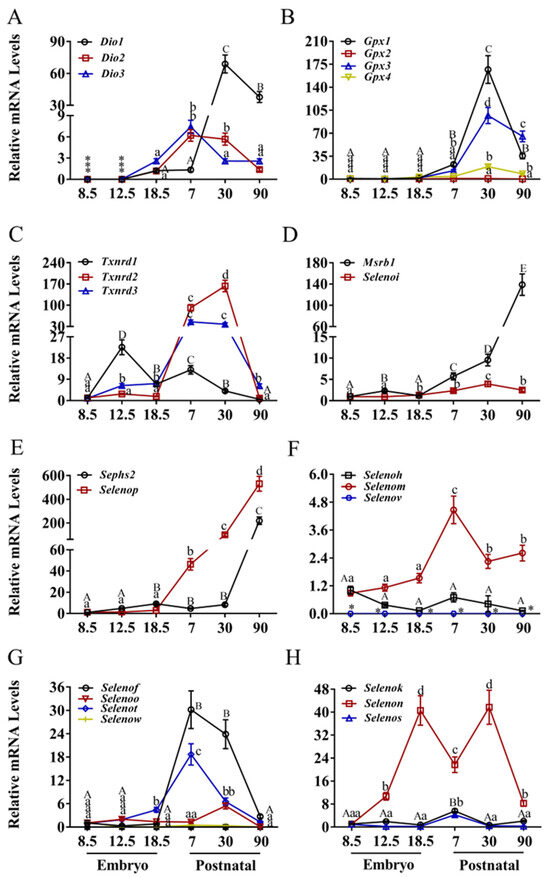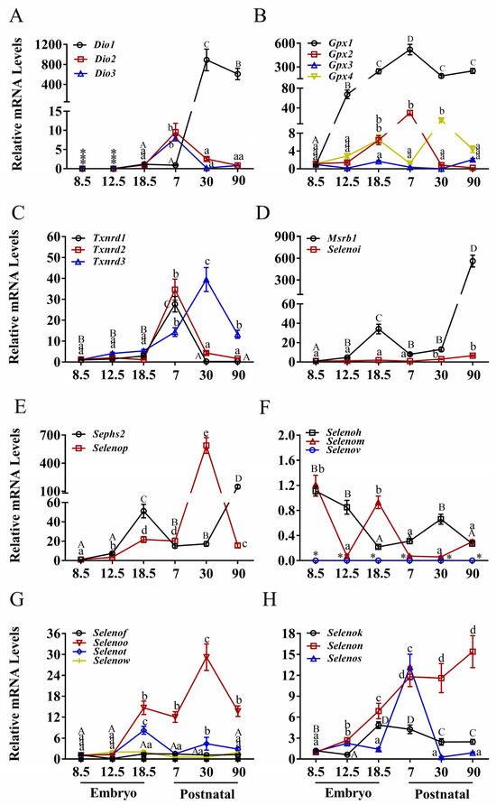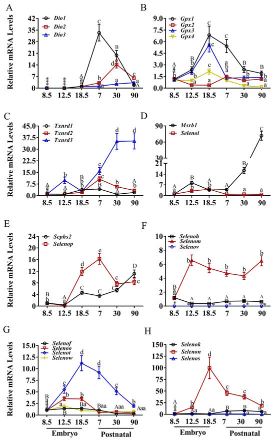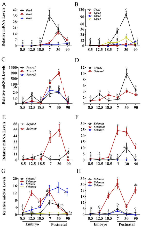 3.3. Expression Patterns of Selenoprotein Genes in the Liver