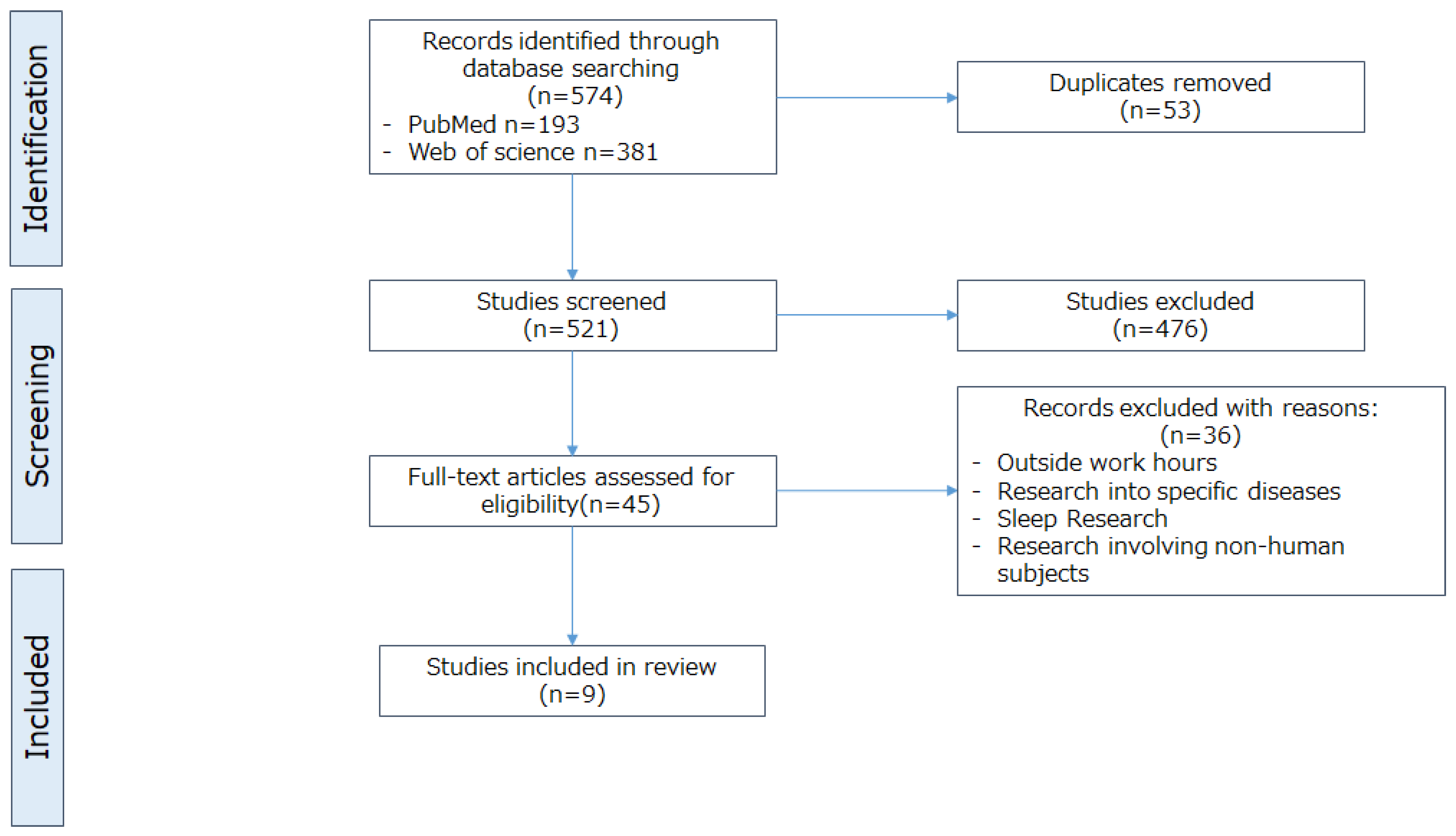- Web of Science 10/07/2025workplace OR “occupational health” OR worker OR employee OR staff OR operatorAND“postprandial hypoglycemia” OR “Postprandial Glycemic” OR drowsiness OR sleepiness OR glucose OR sugarANDconcentration OR fatigue OR productivity OR workforce OR efficiencyANDmeasure OR measurement OR marker OR biomarker OR indexPubMed 10/07/2025(workplace OR “occupational health” OR worker OR employee OR staff OR operator)AND(“postprandial hypoglycemia” OR “Postprandial Glycemic” OR drowsiness OR sleepiness OR glucose OR sugar)AND(concentration OR fatigue OR productivity OR workforce OR efficiency)AND(measure OR measurement OR marker OR biomarker OR index)
