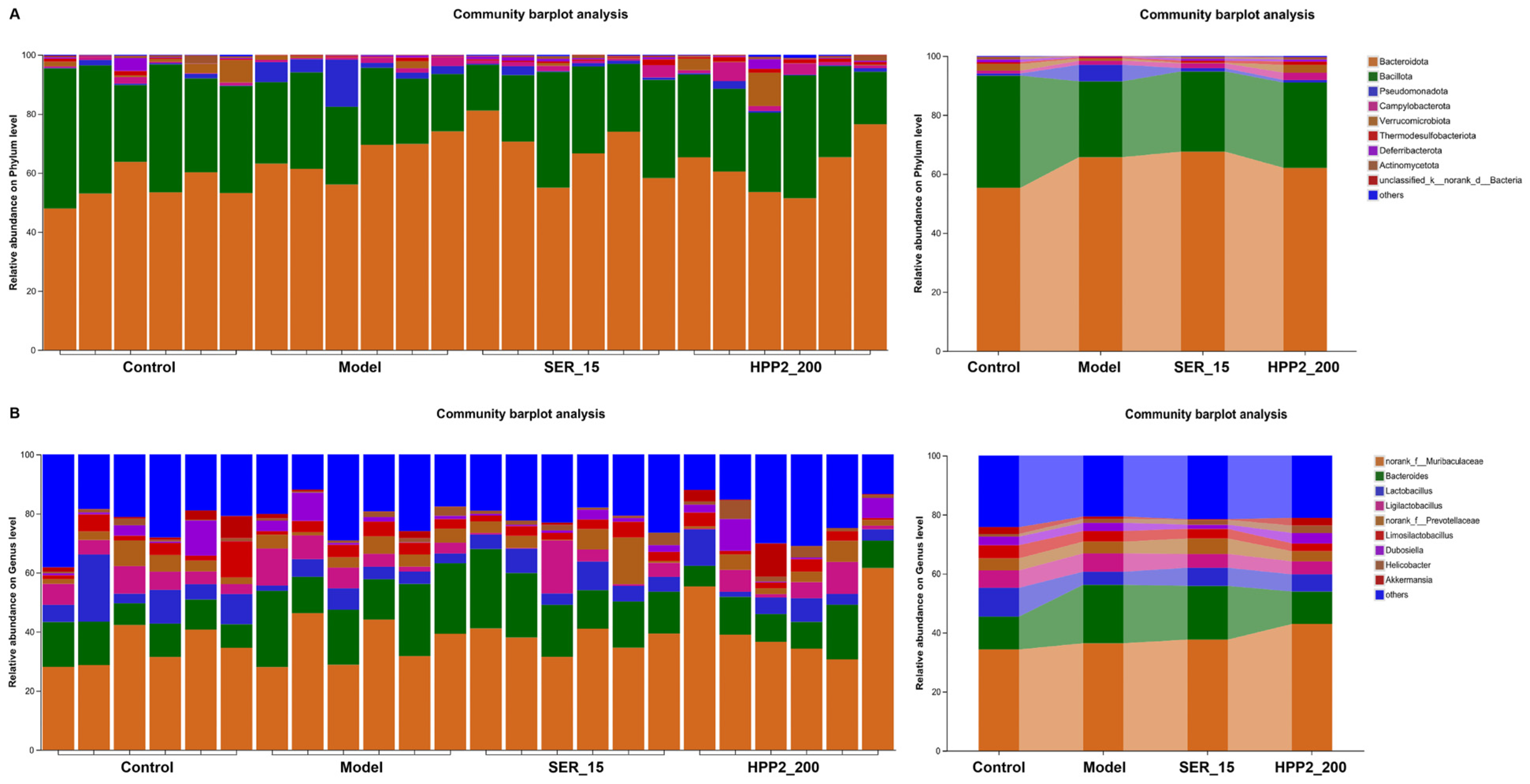 3.8. Effects of Sub-Chronic Pre-Treatment with HPP2 on Gut Microbiota Dysregulation in Foot-Shock Mice