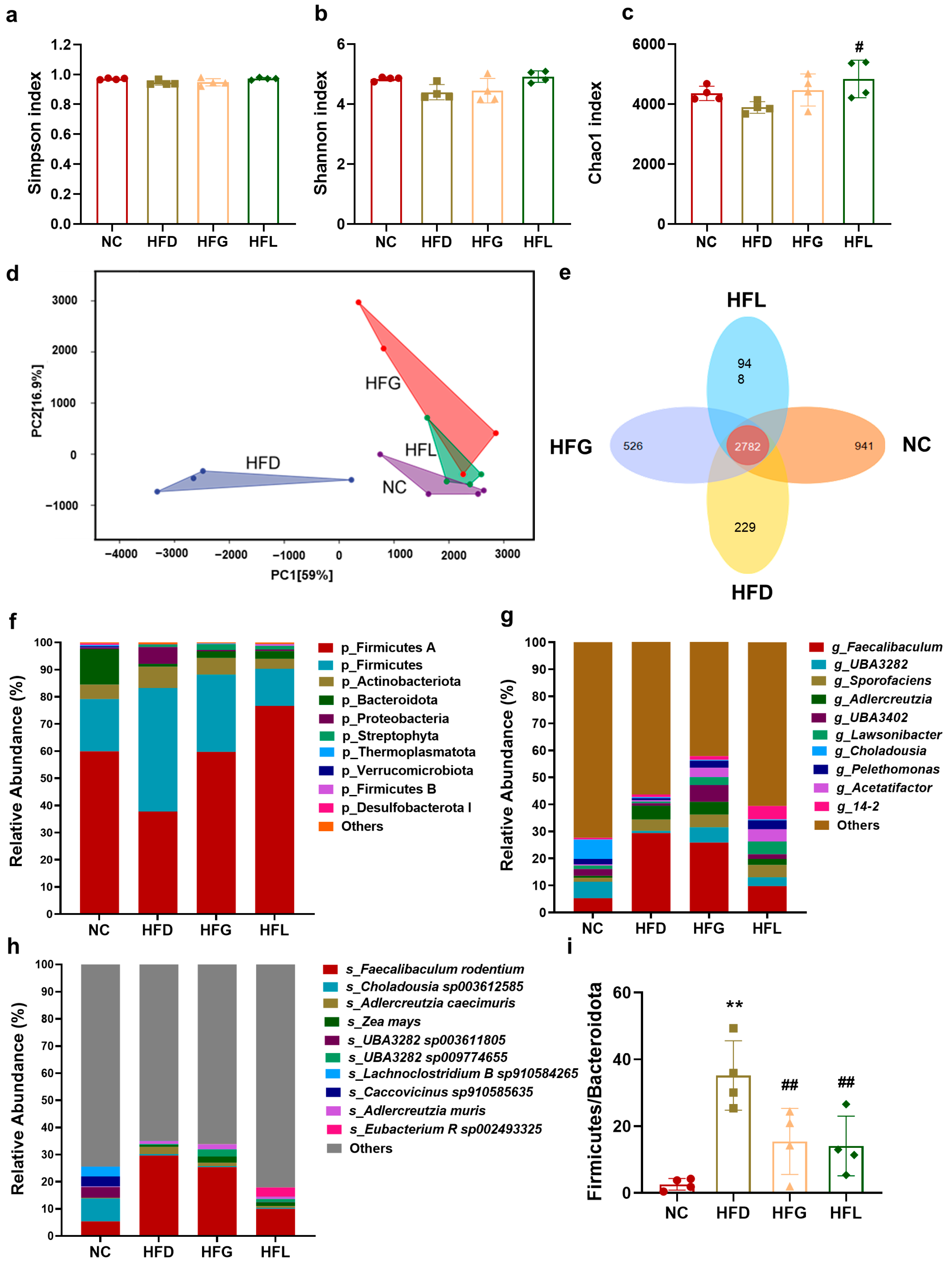 3.4. FG Rescued the Gut Microbiome Dysbiosis Caused by HFD