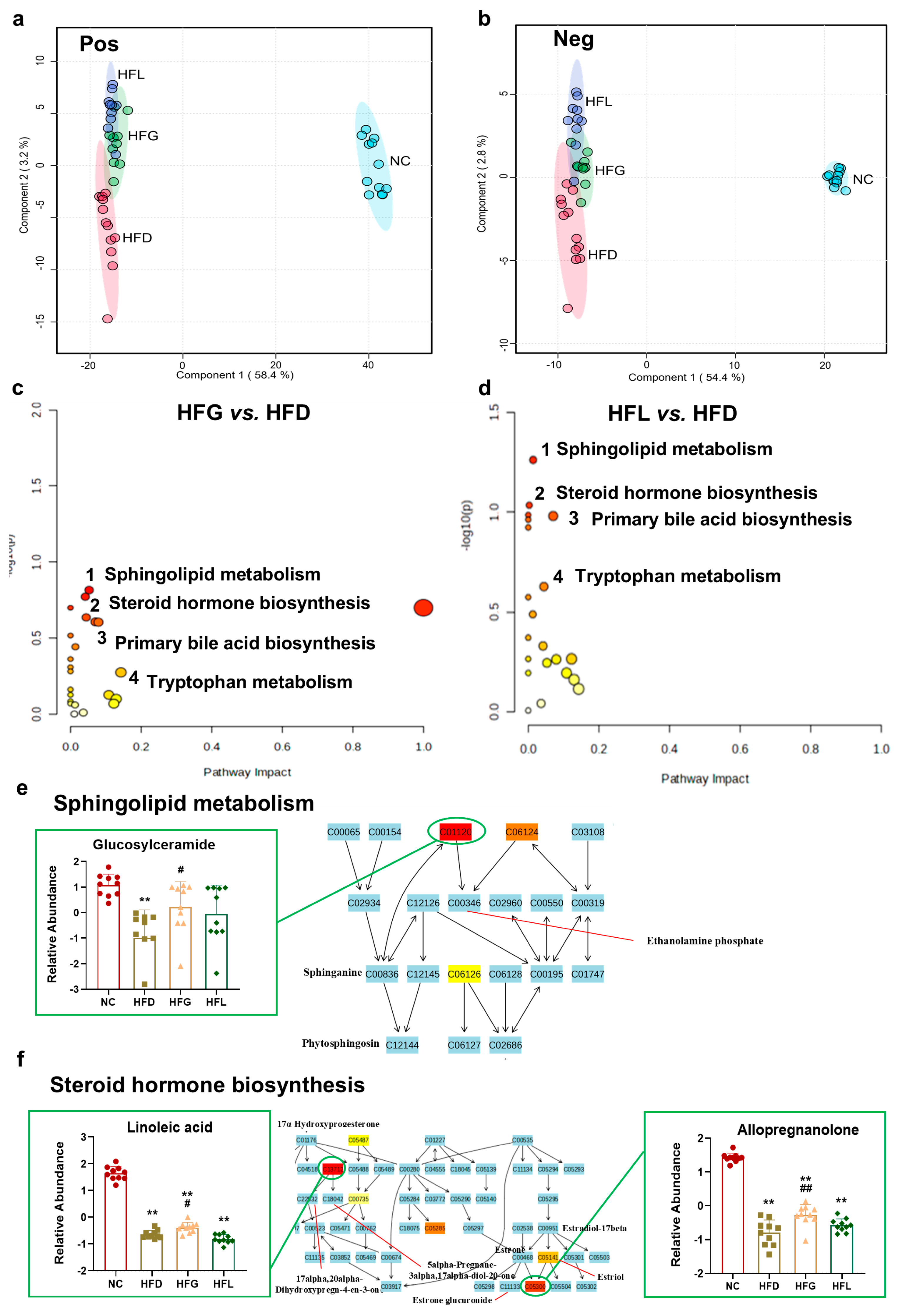 3.3. FG Reversed HFD-Induced Hepatic Metabolites Dysbiosis