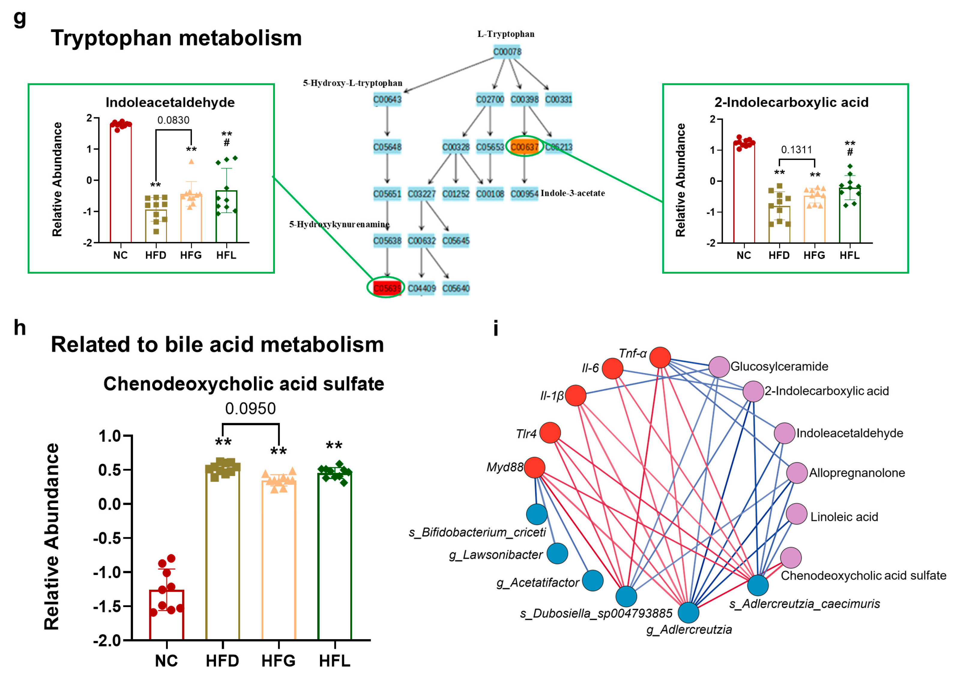 4.2. FG Ameliorated Hepatic Chronic Inflammation via Regulating Hepatic Metabolites and Tlr4/Myd88/CD14 Signalling Pathway