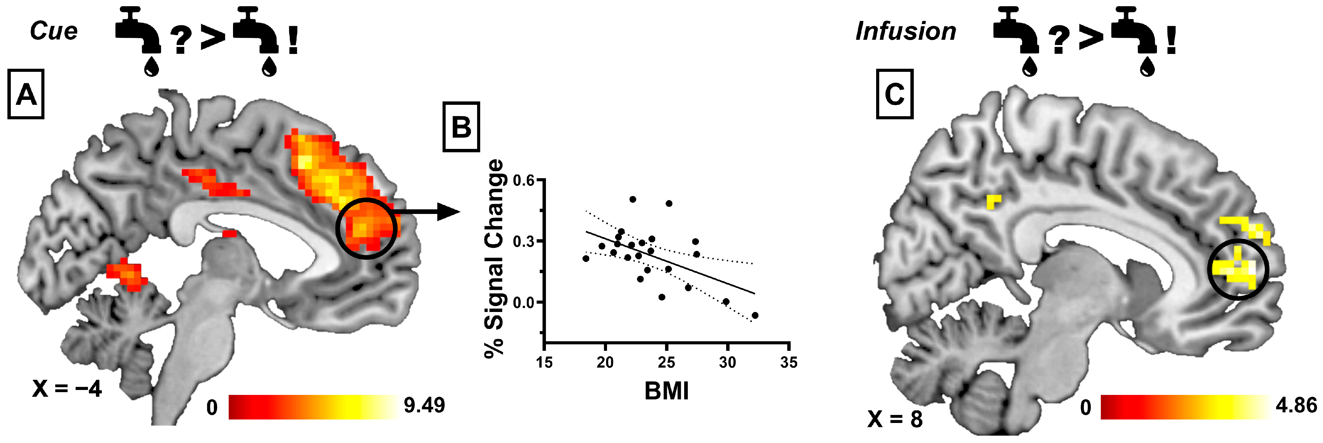 - Passive receipt of glucose during SSS compared to passive receipt of water before SSS (=comparison of SSS reduced hedonic perception of glucose to a neutral stimulus).