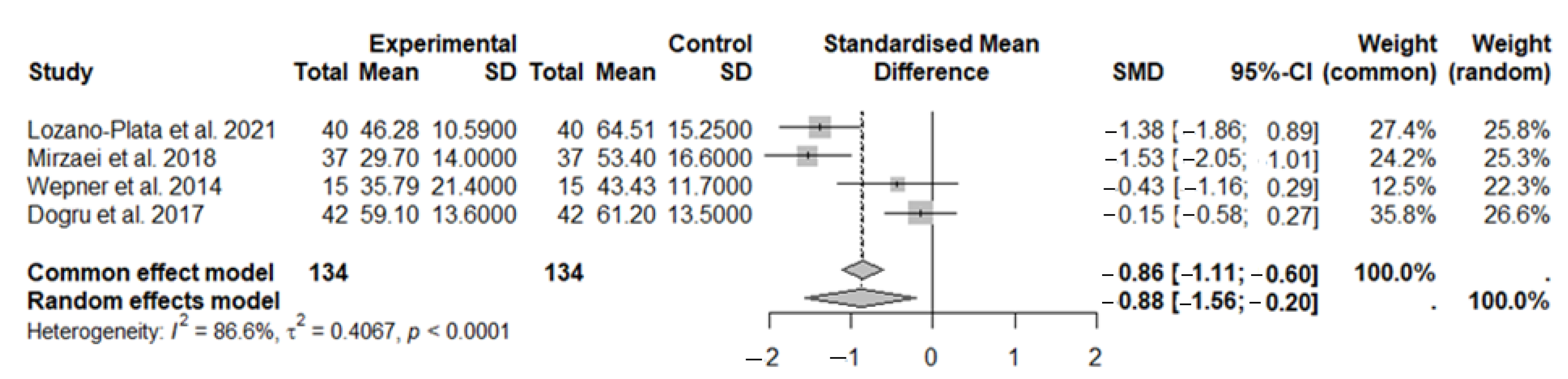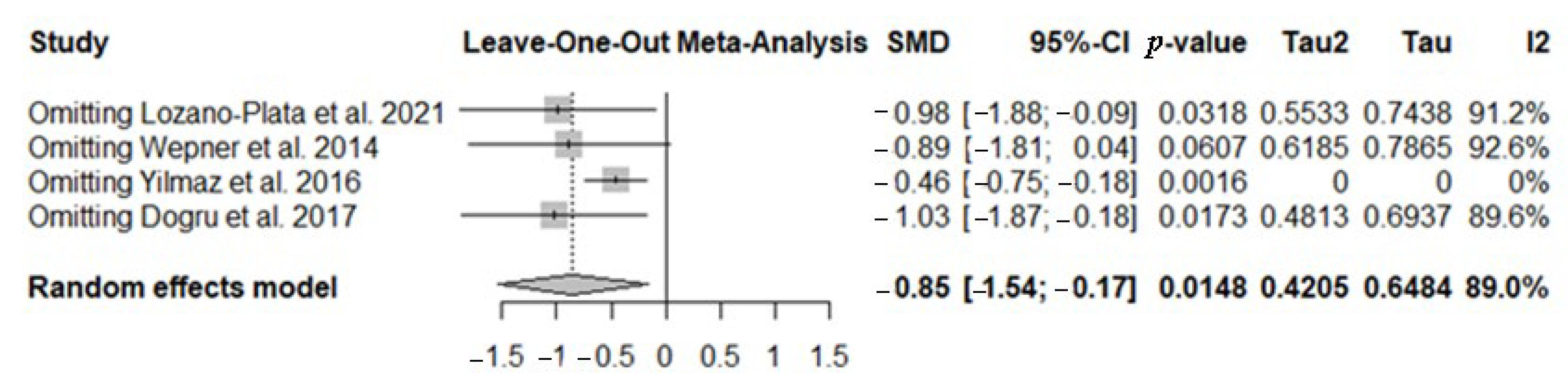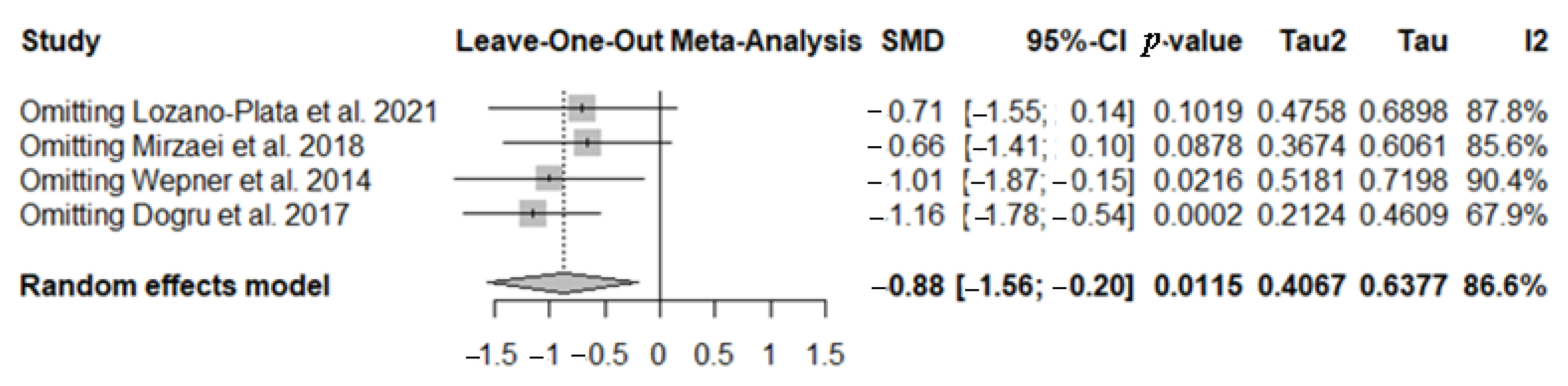 3.5.2. Multivariate Meta-Regression Analysis in FIQ Test