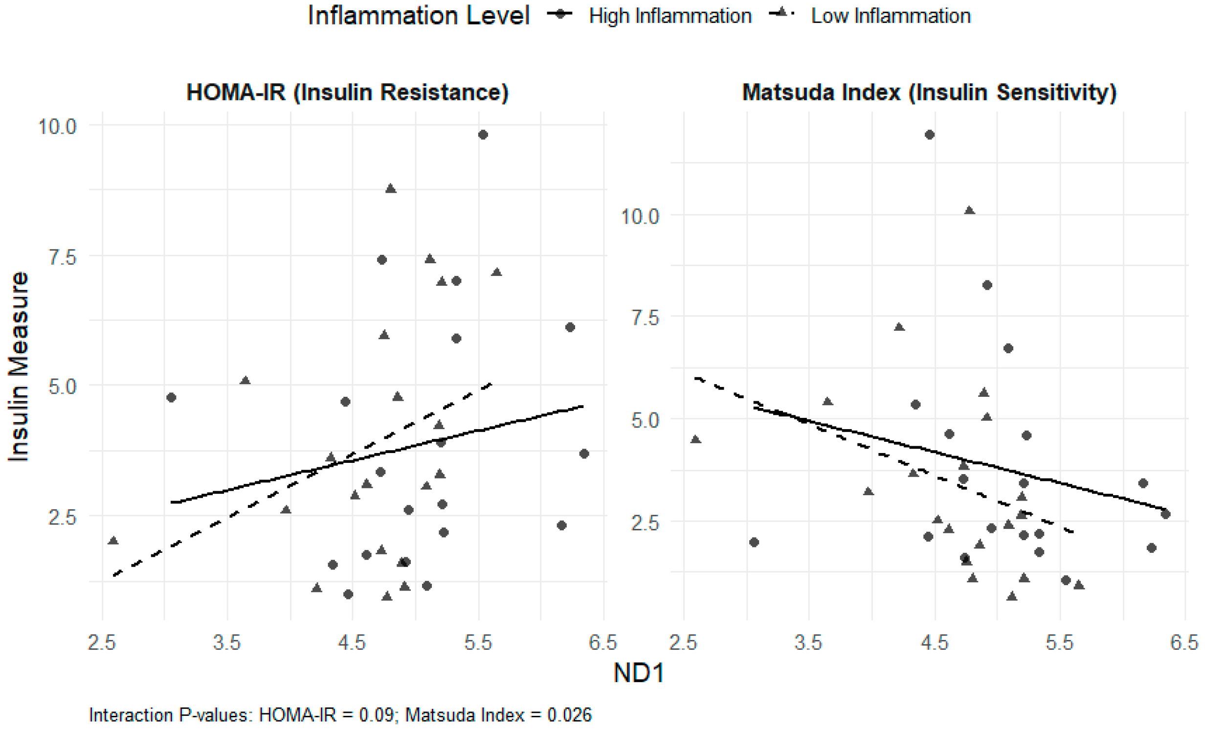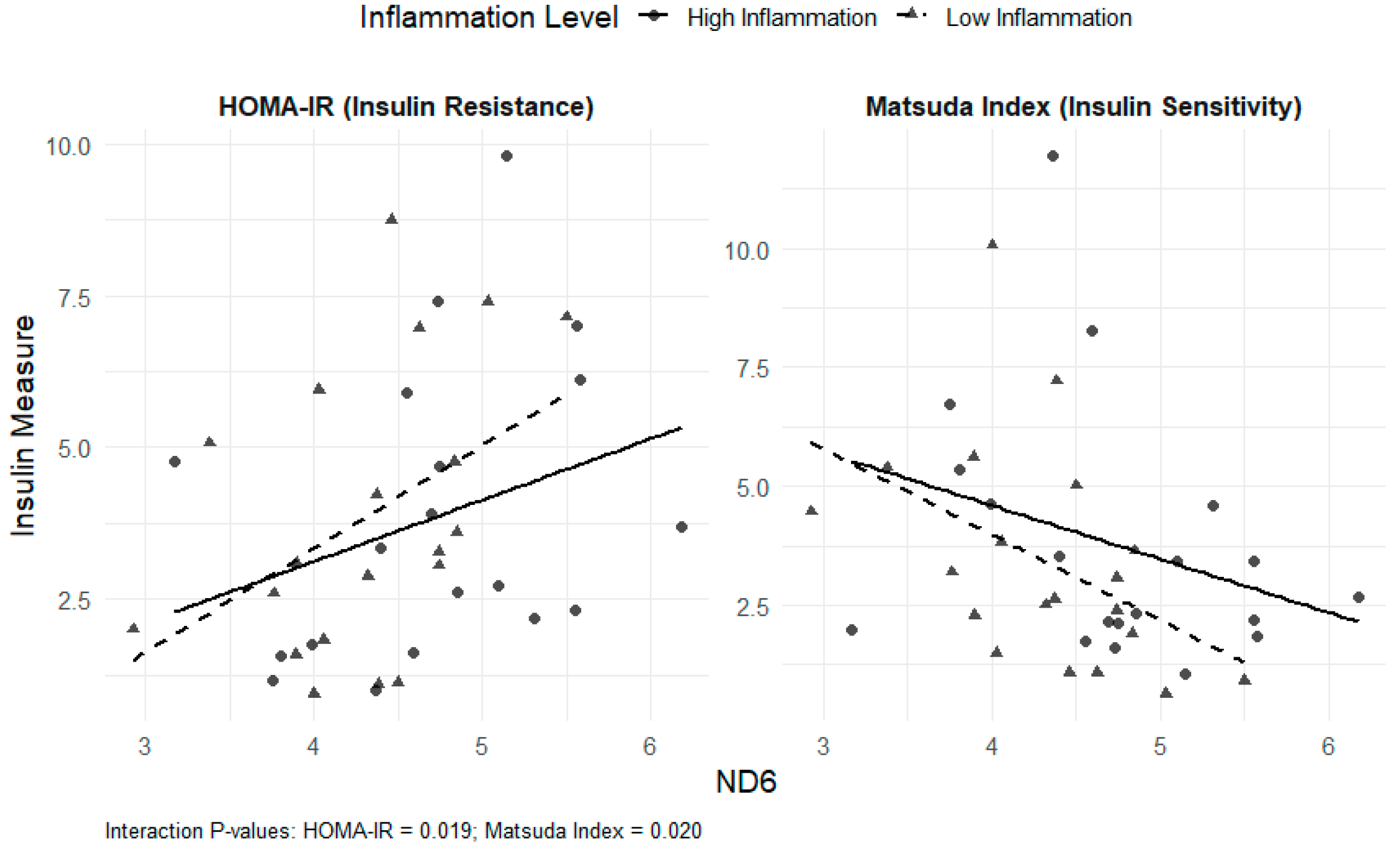 3.5. mtDNA DAMPs (ND1 and ND6), Cytokine-Derived Factors, Insulin Sensitivity/Resistance, and Dietary Intervention