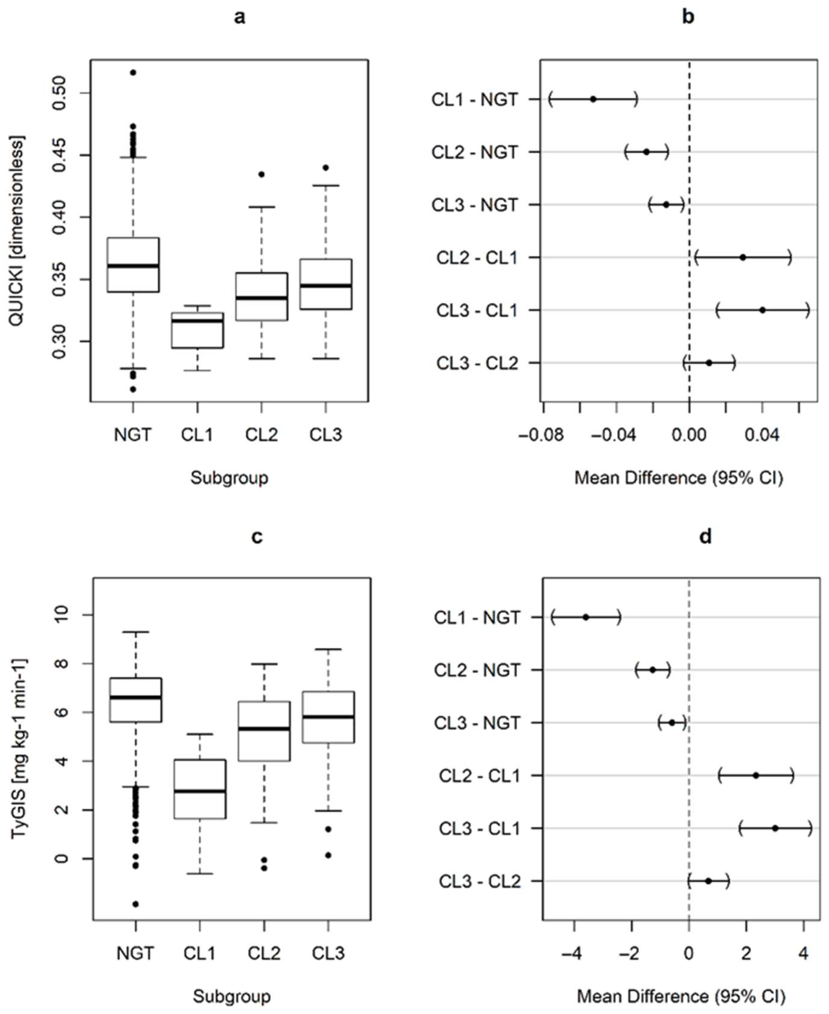 TyGIS, early pregnancy (mg kg−1 min−1) | 6.6 (5.6–7.4) | 2.8 (1.6–4.0) * | 5.3 (4.0–6.4) *† | 5.8 (4.8–6.8) *† |