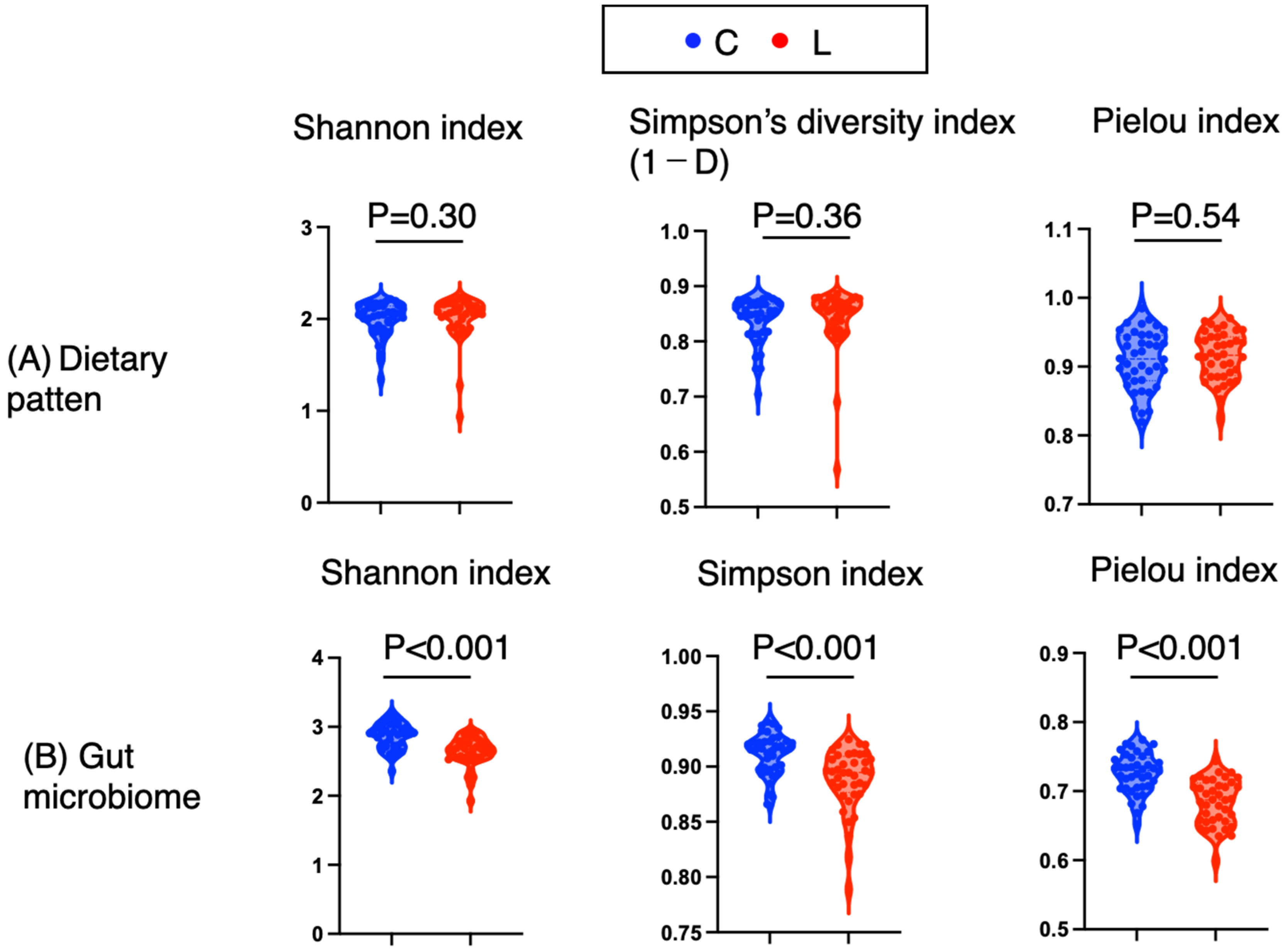Shannon Index (Diet) | Shannon Index (Gut Microbiota) | |||