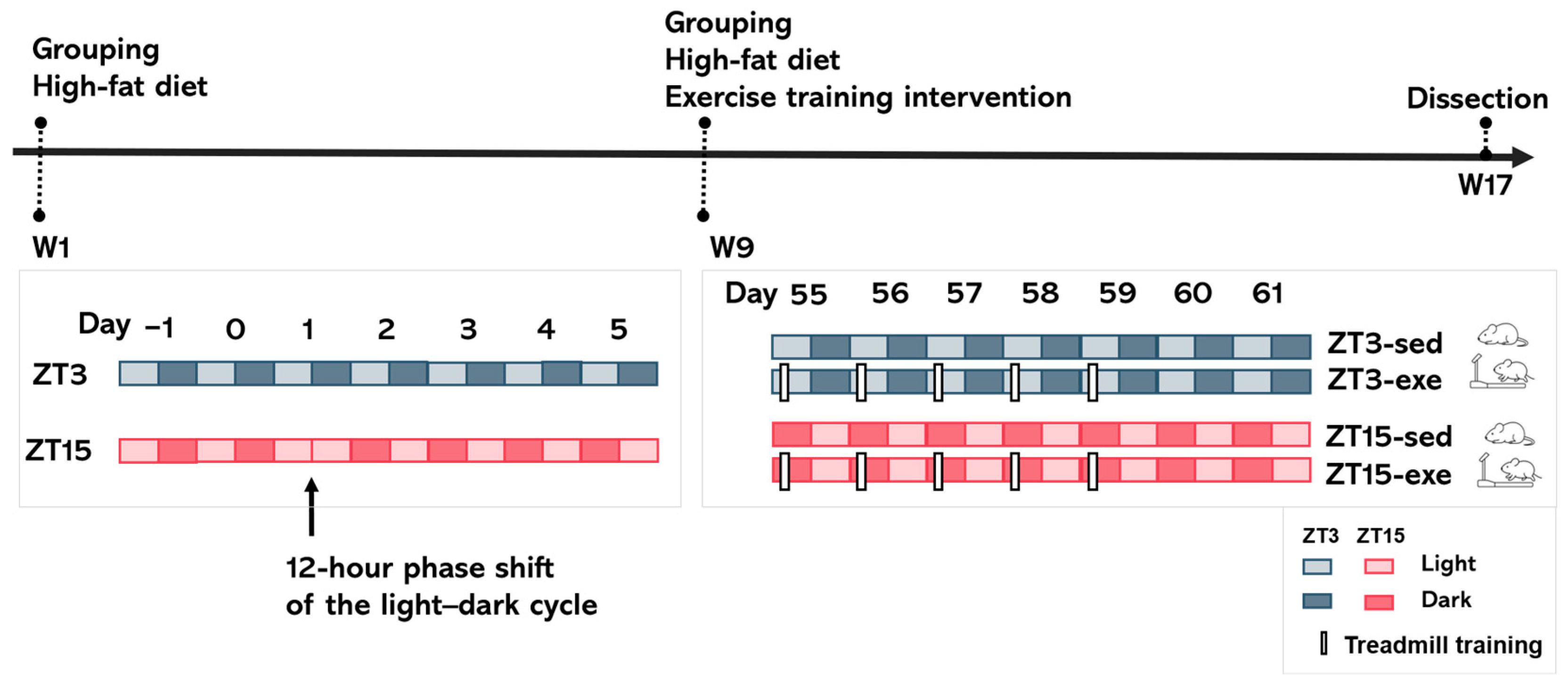 3.1.1. Circadian Regulation of Feeding Under HFD and Exercise Training