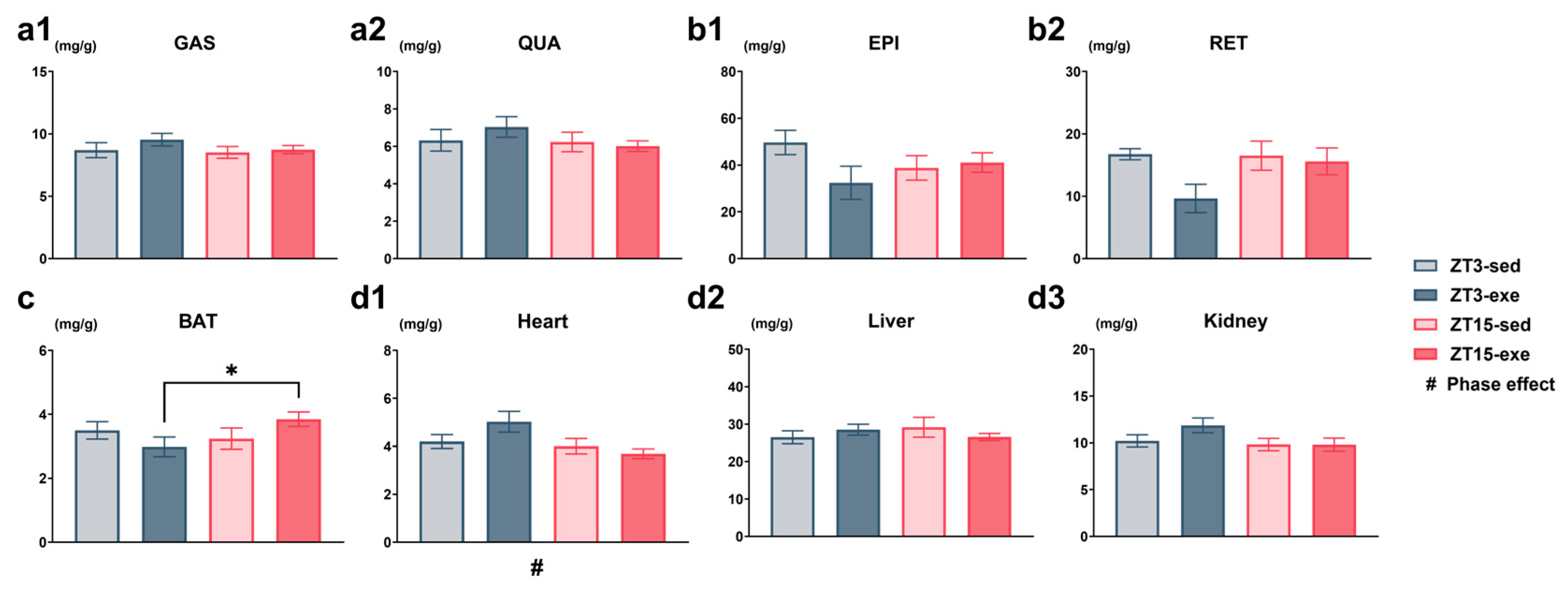 3.1.3. Effects of Exercise Timing on Relative and Absolute Tissue Weights