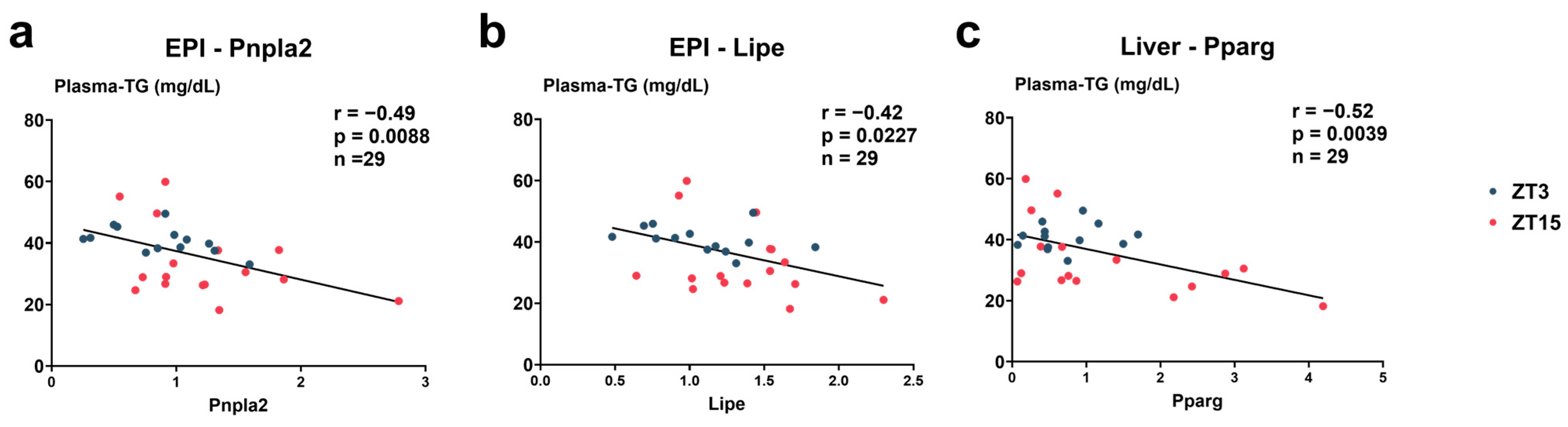 3.5. Expression of Clock and Metabolic Genes in EPI
